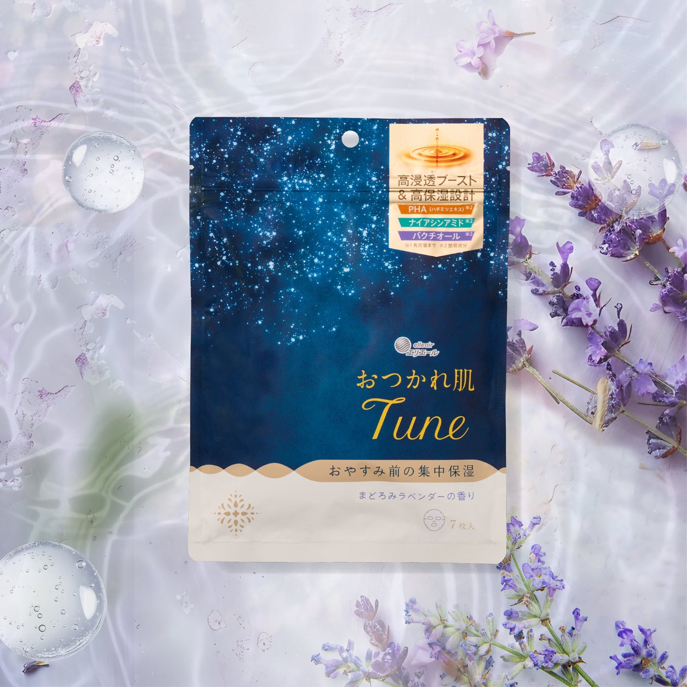 『おつかれ肌Tune』は、くすみ※10やごわつきにやさしくアプローチする角質ケア成分※11「PHA(ハチミツエキス)」※8、明るく澄んだ肌※9へ導く「ナイアシンアミド」※8、ふっくら明るい印象に導く次世代レチノール様成分「バクチオール」※8を配合。疲れたきもちを包み込むような「まどろみラベンダー」の香りがおやすみ前のやすらぎを提供します。