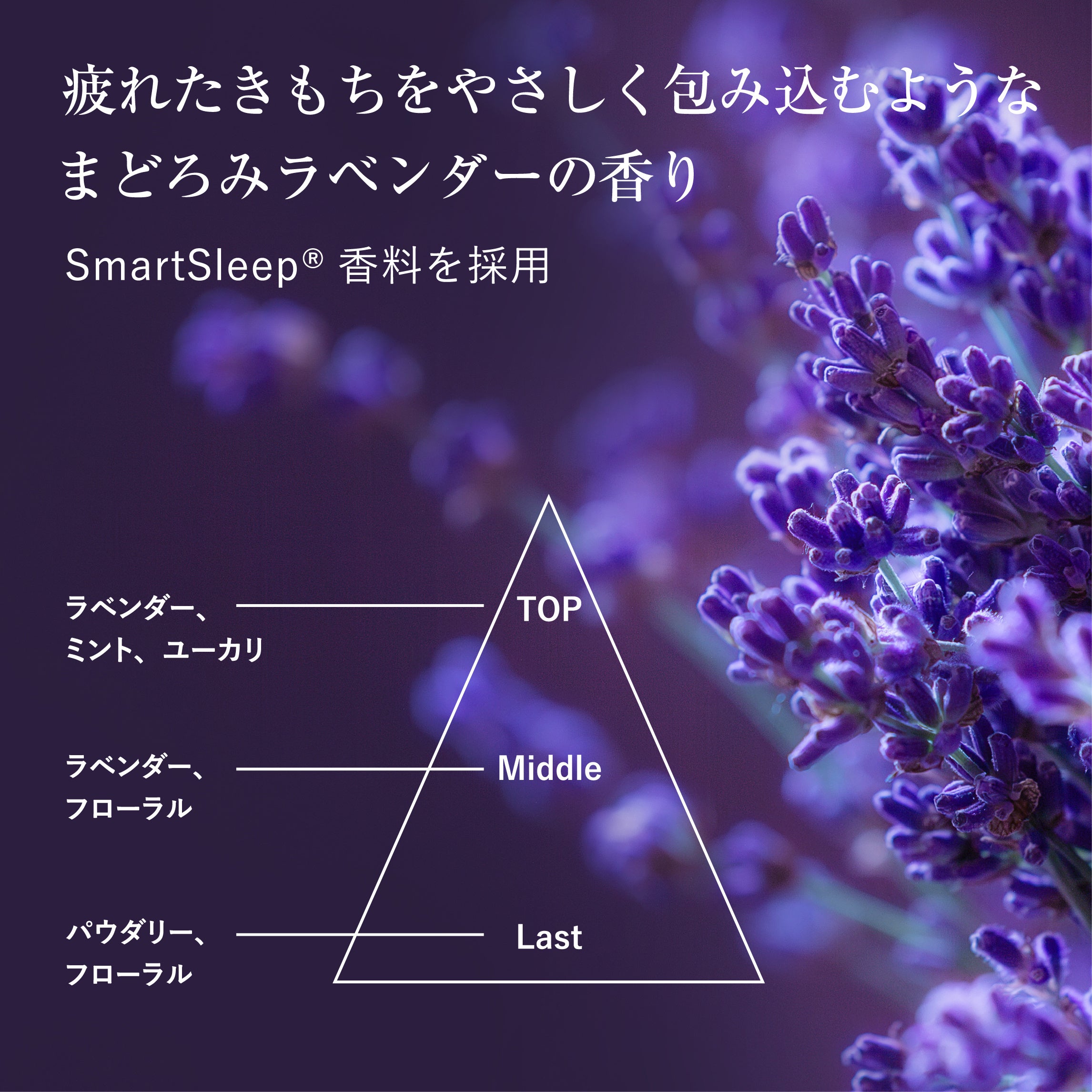 ■疲れたきもちを包み込むような「まどろみラベンダー」の香り(SmartSleep®香料)