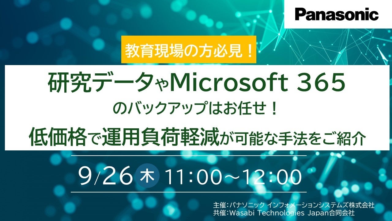 【ウェビナー】9/26(木)\教育現場の方必見!/研究データやMicrosoft 365のバックアップはお任せ!低価格で運用負荷軽減が可能な手法をご紹介
