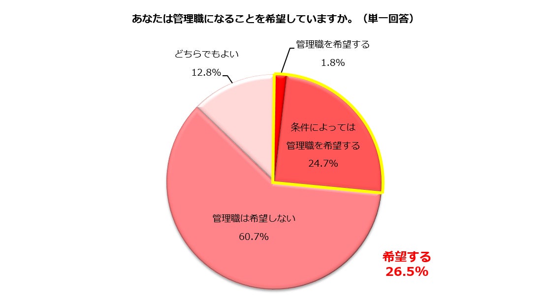 「5.家庭の制約がなく100%仕事に時間を使えれば管理職を「希望する」64.4%」のグラフに誤りがあったため、タイトル・本文の該当箇所を正しいデータに修正いたしました。謹んでお詫び申し上げます。