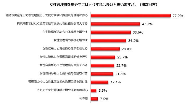 女性は、もし家庭の制約がなければ“管理職”を希望するのか?「希望する」64.4%|妥当な女性管理職比率「50%程度」29.7%、女性管理職増やすポイントは「雰囲気」77.0%
