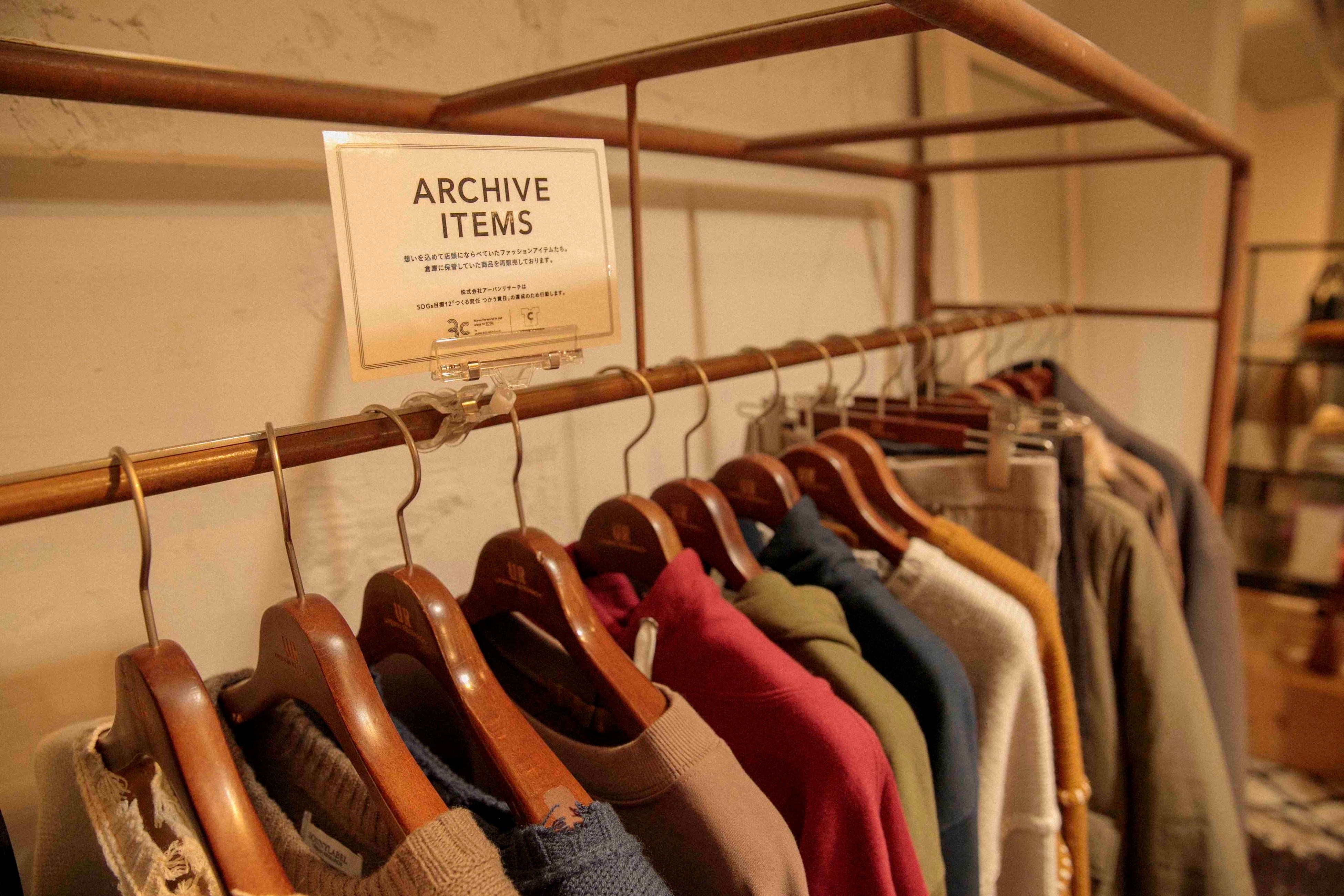 様々な理由で倉庫に眠っていた店舗什器や、ブランドコンセプトに共感した「USEDを拡張する進化型古着屋“森”」と「岩切商店」らとの取り組みで、洋服をたいせつに長く着る・楽し むことの提案として “古着”の販売を行います。また廃棄衣料の削減を目指した取り組みの一環でもある、アーバンリサーチグループにて取り扱っていた、アーカイブアイテムも展開。今ある資源を大切に使う。その想いのもと、廃棄予定の衣類やプロダクトを減らし、見落とされているモノの価値にフォーカスし、再提案することをテーマに構成されたフロアとなって います。