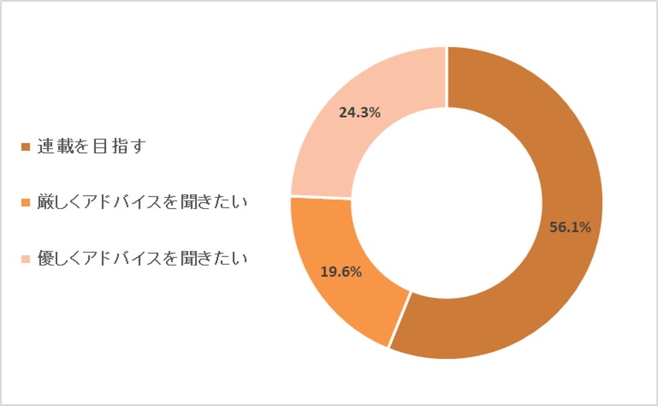 持込希望者の事前の持ち込みへの温度感は半数以上が「連載を目指す」を選択しており、商業デビューを目指すクリエイターが多くいました。