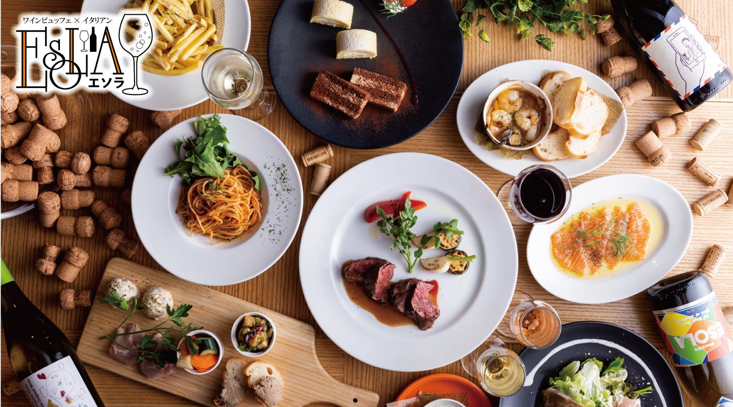 1号店となるブランドは、「ワイン×イタリアン ESOLA」。「ESOLA」は、セルフスタイルのビュッフェ形式でお好みのワインと出会い、お楽しみいただける新感覚のワインバーで現在13店舗を展開しております。