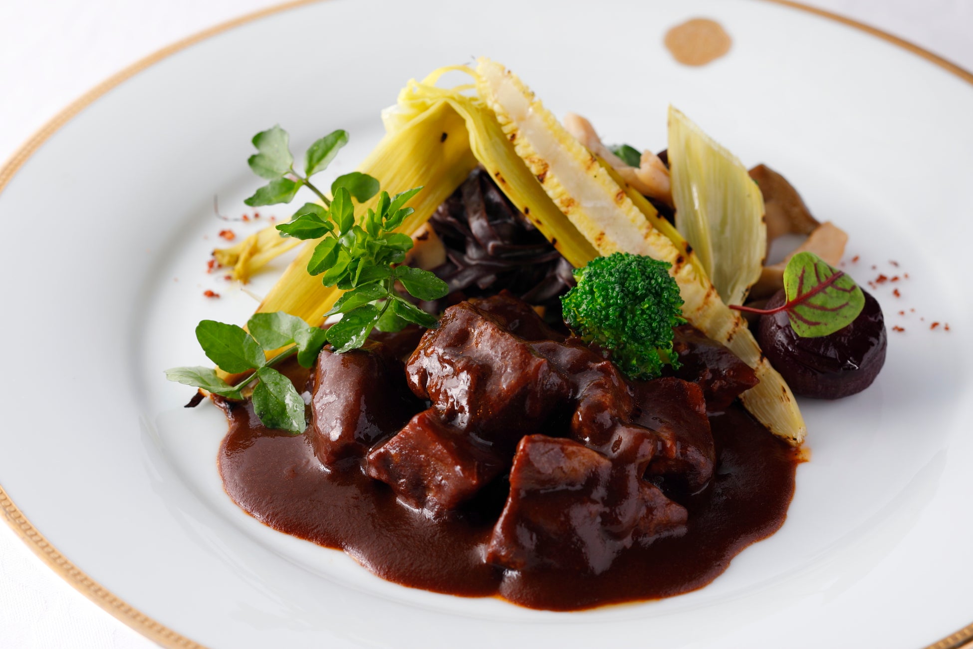 1頭から少量しか取れない希少部位のトウガラシ肉(肩ロース肉)を資生堂パーラー特製のシチューソースで柔らかく煮込んだ一品です。
