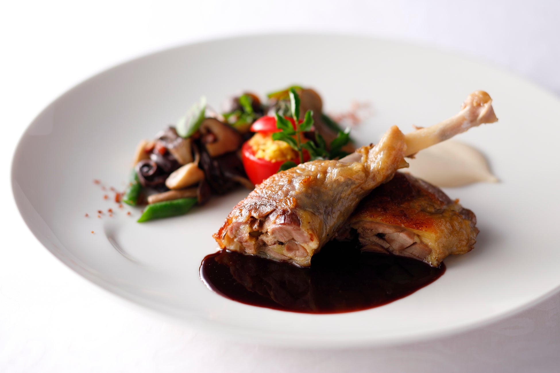 岩手県産ホロホロ鳥骨付きもも肉のコンフィ 自家製ヌイユ添え