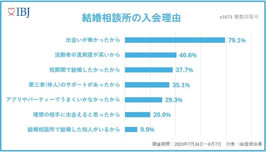 実際にIBJの結婚相談所で活動する方の3割は「第三者のサポートがあったから」「アプリやパーティーでうまくいかなかったから」と回答しており、マッチングアプリの利用者が増えることは、潜在需要を喚起し、結婚相談所の利用者数増加に繋がっています。