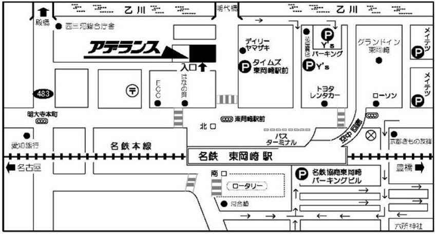 アクセス :名鉄「東岡崎」駅北口から徒歩2分