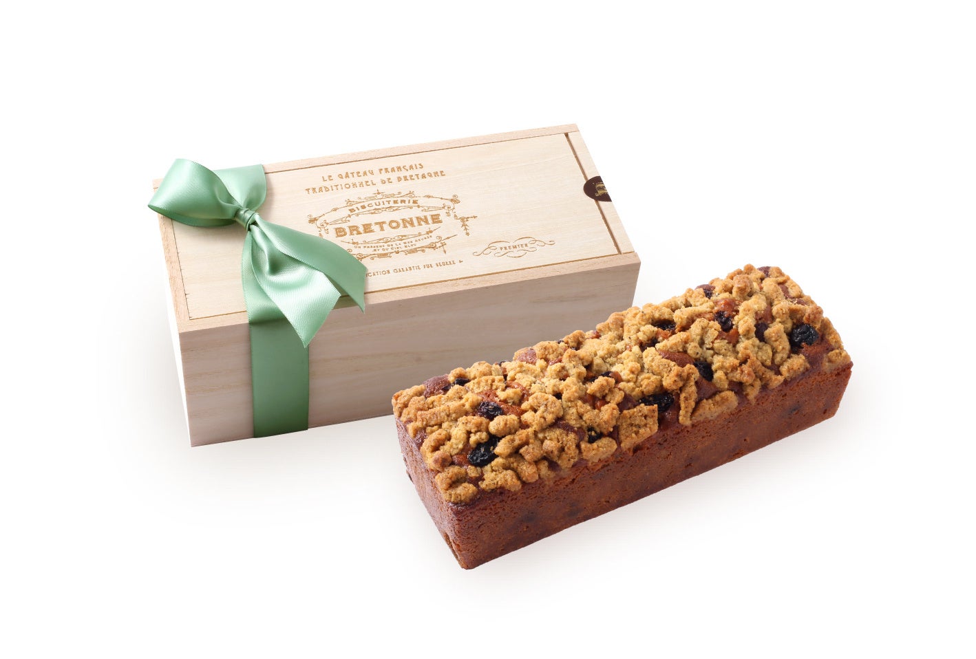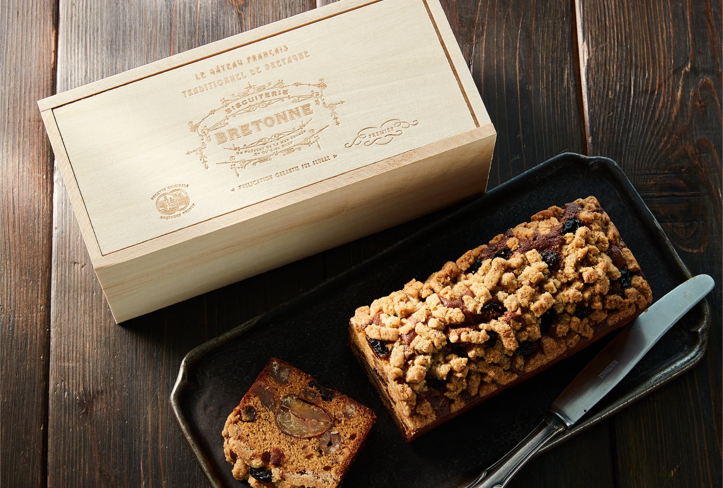 10 周年記念に合わせて限定でお作りしたプレミアムなケーク。ごろっと大粒の熊本県産の和栗と、砕いたイタリア栗のマロングラッセ。異なる風味と食感が魅力の 2 種の栗を贅沢に焼き込んだプレミアムケークです。発酵バターと濃厚な塩キャラメルを合わせたリッチな生地に、ラム酒に漬け込んだ大粒のサルタナレーズンや香ばしいくるみを合わせ、さらにはアールグレイやディロンラムV.S.O.P.、コニャック V.S.O.P. の芳醇な薫りをまとった、奥深く贅沢な美味しさです。 ロゴの焼印が入ったオリジナルの木箱でご用意いたします。普段はなかなかお出しできない、贅を尽くした味わい。ぜひこの機会にお試しください。