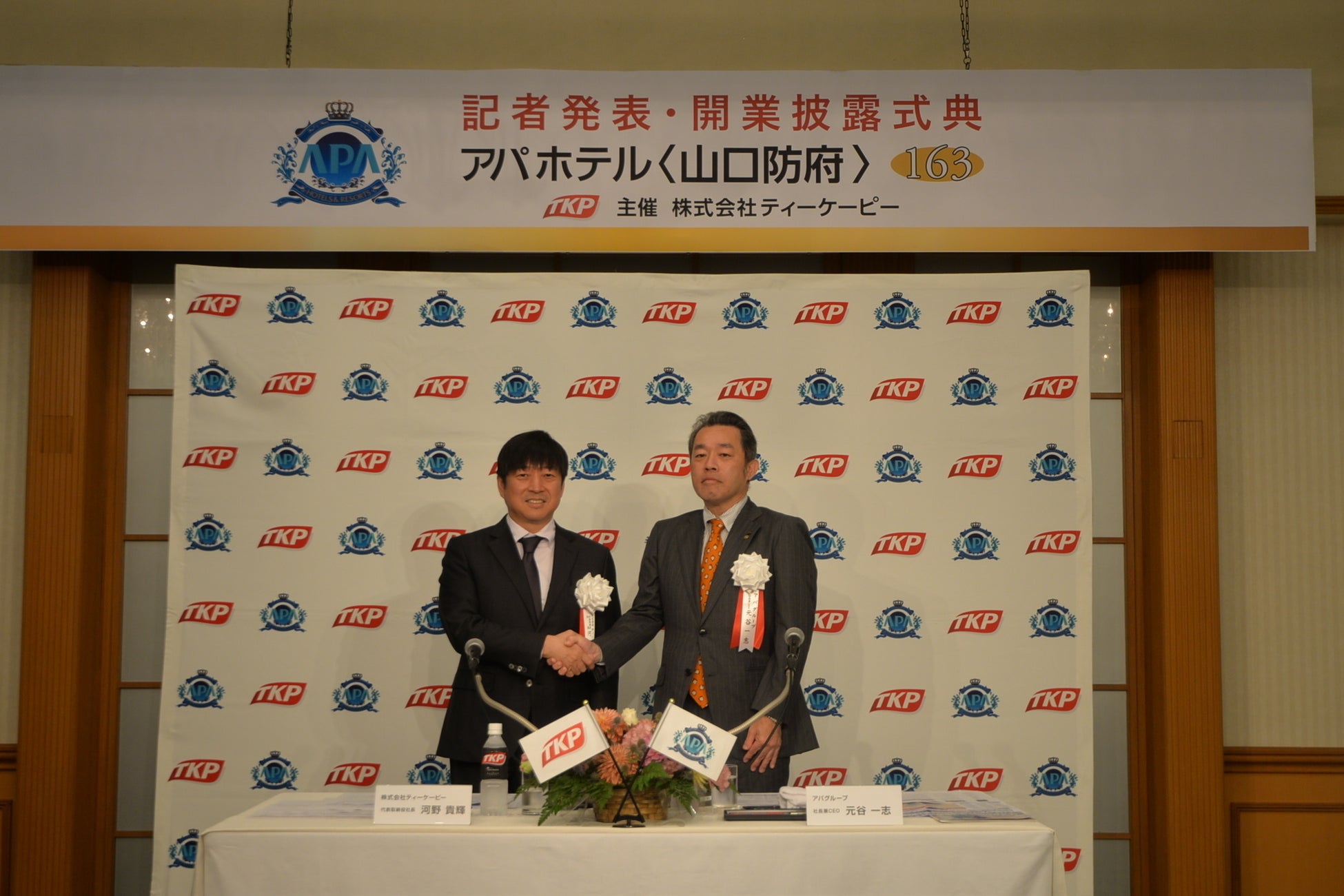 披露式典に先立ち行われた記者発表にて、アパグループ社長 兼 最高経営責任者(CEO)の元谷 一志は「アパホテル〈山口防府〉は2008年に取得し、当時中四国エリア2棟目のホテルであった。開業当初は107室であったが、現在は141室と34室増室を行い、多くのお客様にご宿泊頂いている。今般、ホテルのフランチャイズ化に伴い、広島における新規用地の取得に至った。直営のフランチャイズ転換はハード面、スタッフの教育面の時間をかけることなく、運営を実行可能で、当社はネットワークの拡大が実現でき、両社にとってWin-Winの戦略である。防府市は、歴史・文化の面から多くの方が行き交う土地であり、ビジネス需要のみならず観光需要にも期待し、エリアの発展に期待したい。」と述べた。