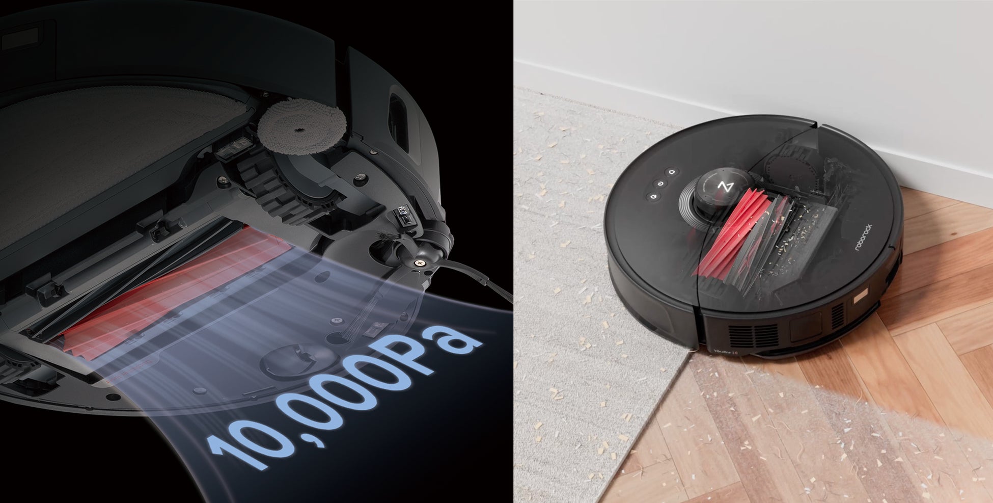 Roborock製品で最強となる10,000Paにパワーアップした吸引力と2本のラバー製メインブラシ「デュアルメインブラシ」により、微細なハウスダストからペットのトイレ砂などの大きめのゴミ、そしてラグやカーペットの奥に潜んだ髪の毛までかき出し、吸い上げます。メインブラシカバーの内部に取り付けられたカッターにより、髪の毛などが絡まりにくくなり、お手入れもさらに簡単になります。