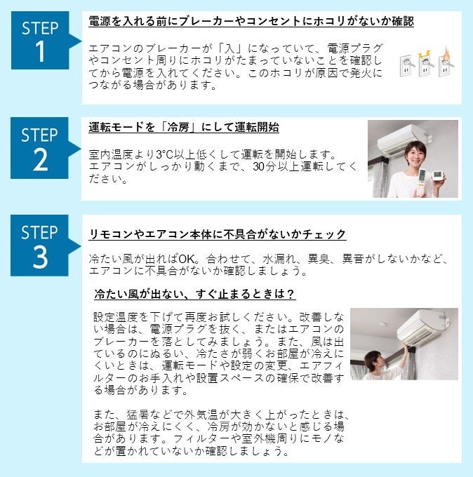暑さが本格化し、夏の冷房シーズンに入る前には、エアコンを運転し、不具合がないか確認する「試運転」をしておくことが大切です。パナソニック エアーマイスターの福田 風子が、3つのSTEPでの「エアコン試運転」解説します。