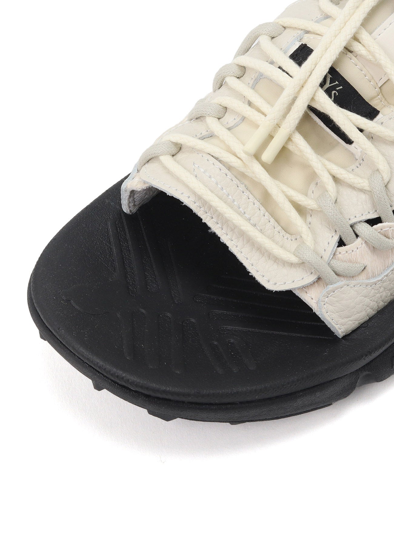 デザインは、アッパー全体に元々入っていたパンチング穴を省き、紐先や踵のゴムの種類の素材や仕様を変更するなど、細部に洗練された表情を取り込んだ。甲の中央には「Y's」「Flower MOUNTAIN」のダブルネームを、サイドには「Y's」ロゴの織りネームが施されている。クッション性と弾力に優れたインソール、どのような場所でもグリップする軽量なグリップソールによる快適な履き心地。Flower MOUNTAINの繊細なハンドクラフトによる仕上げが、特有の雰囲気と質感を完成させる。