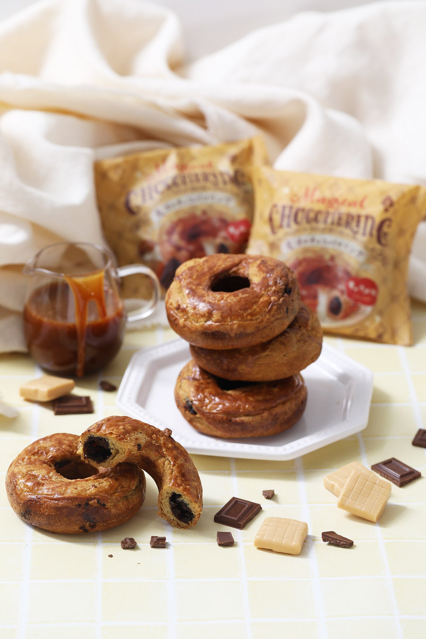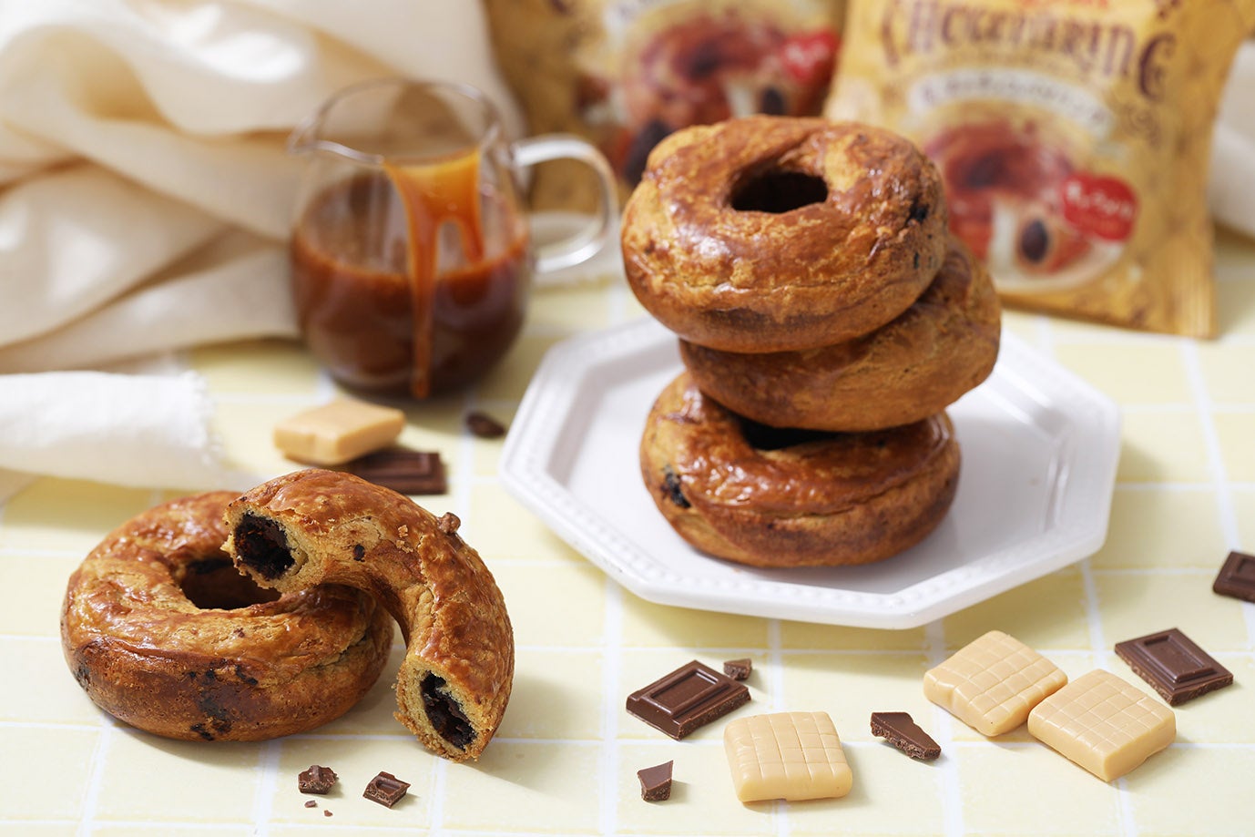 ・リング型にしたキャラメルの風味豊かなサクサクしたパイ⽣地にキャラメル風味のチョコクリームを包んで焼き上げました。1個で大満足のボリュームも魅力的です。