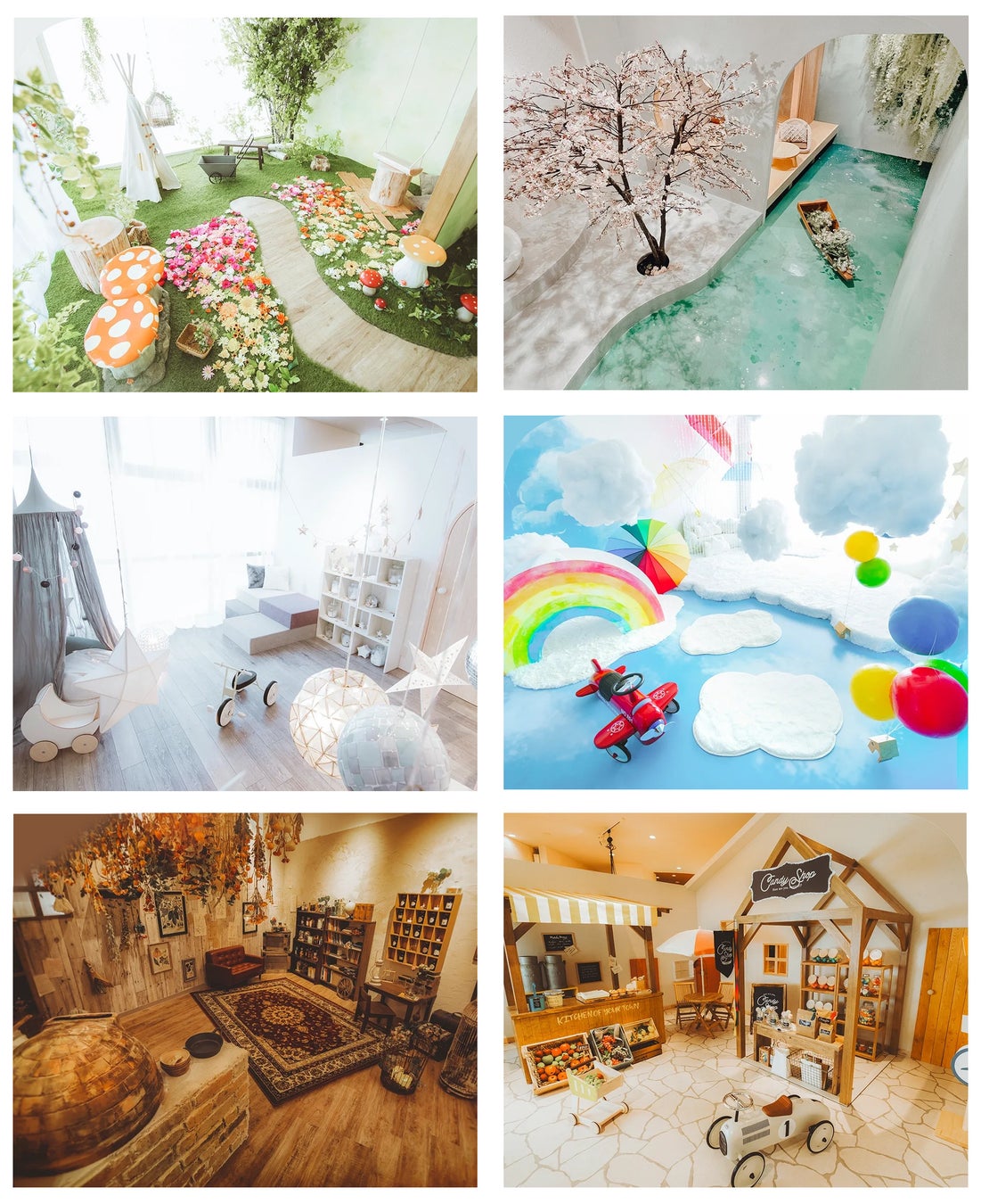 Forest(フォレスト)…まるで絵本の中に入り込んだみたい!森の中をイメージしたスタジオ。きのこの森をくぐって、お花畑を通って、大きな樹の下にあるテントでぽかぽかひなたぼっこ!