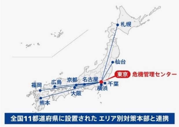 防災基地「危機管理センター」の運用により、全国約150棟のビル連携を可能に