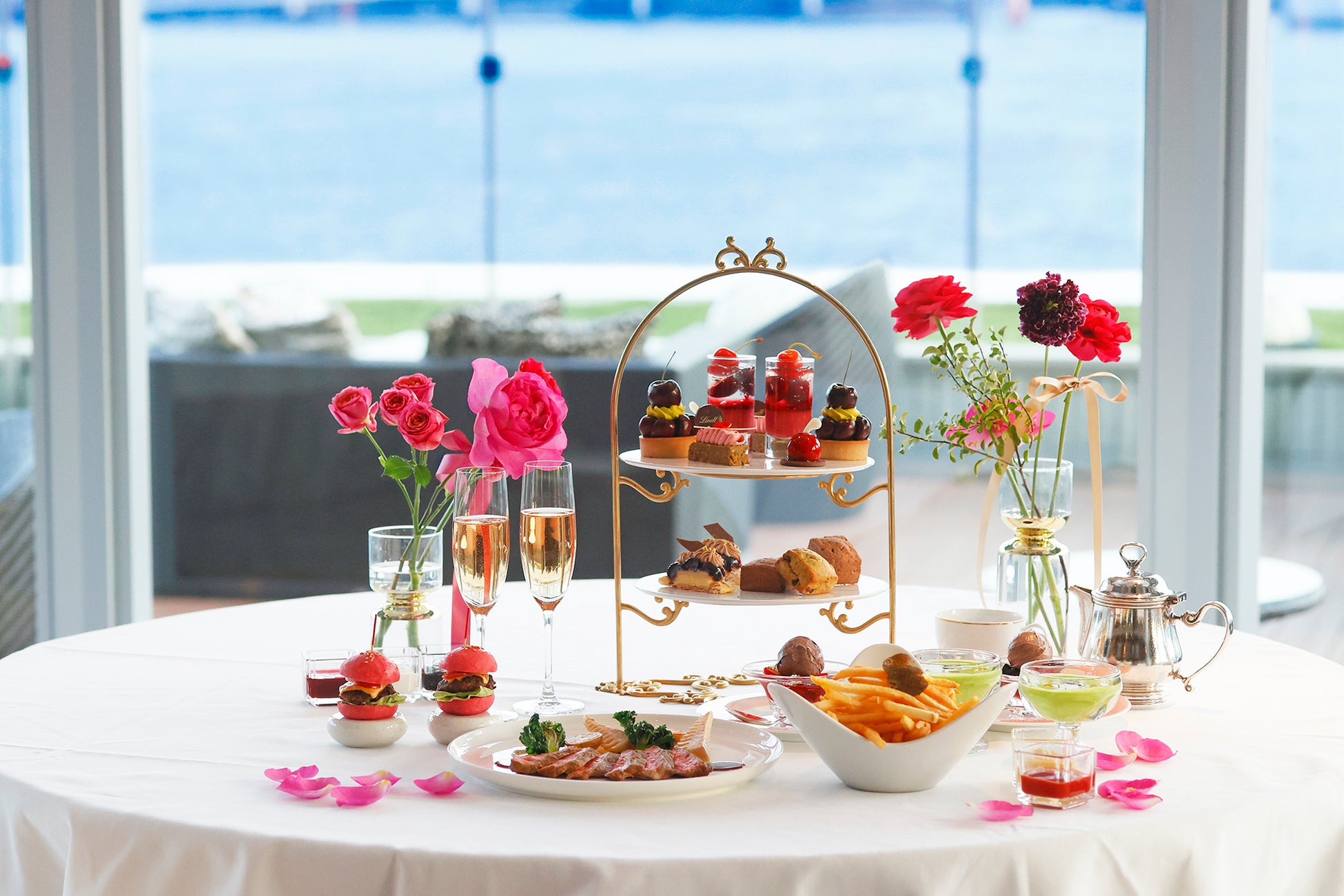 レインボーブリッジを臨むベイビュールームまたは隅田川を臨むリバービュールームにて、季節のアフタヌーンティーをお楽しみいただけます。