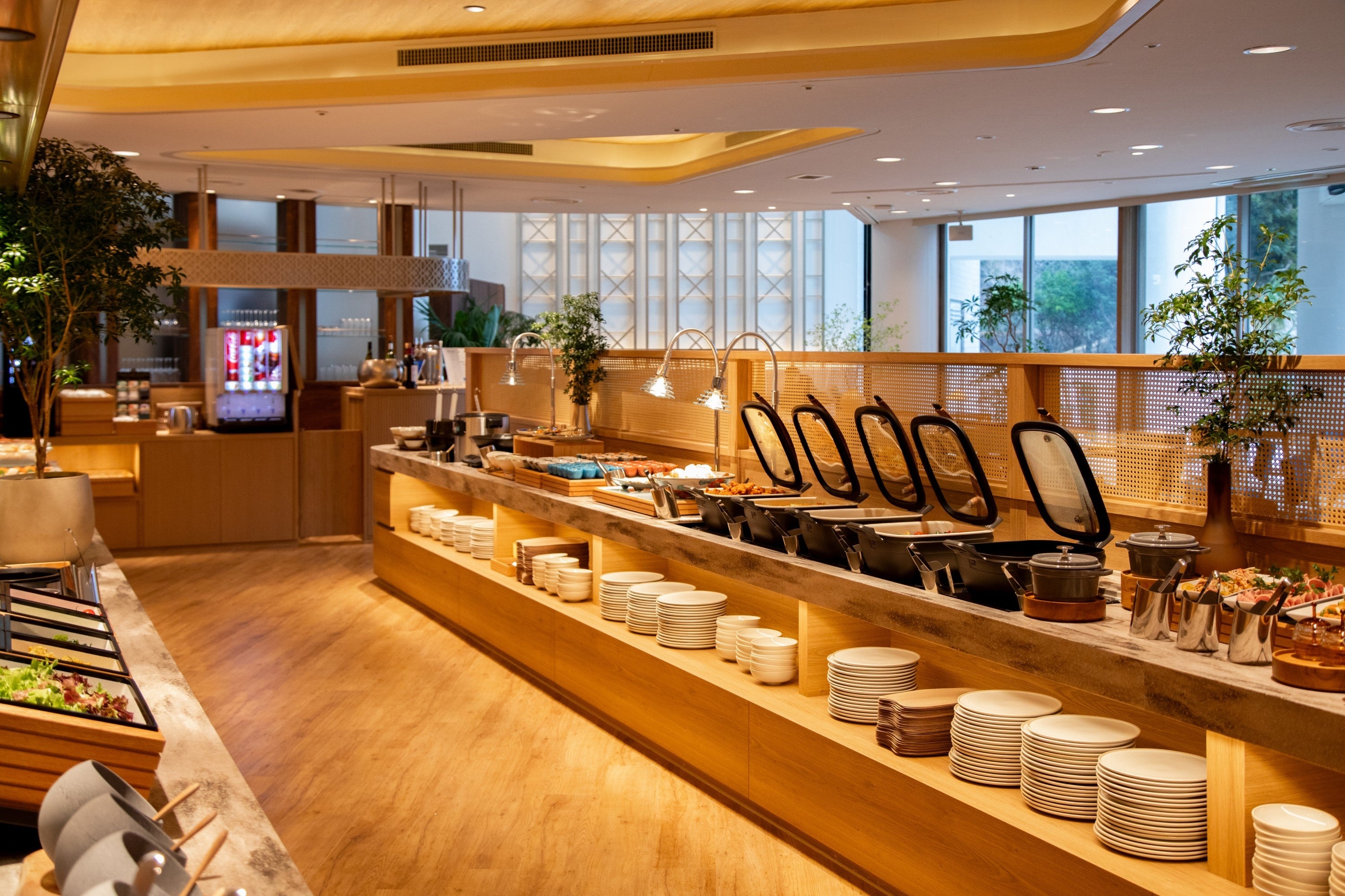 海を一望する大きな窓から日が差し込む明るい店内は、設えやコンセプトを一新し、リゾートで特別な食体験を提供するブッフェレストランへと生まれ変わります。勝浦の自然や新鮮な食材に調和するように明るく開放的な空間を演出し、ボックス席やベンチ席、ビックテーブルなどを配したレイアウトとしました。専用のバーカウンターを完備し、お肉に合う赤ワインなどもフリーフローでご利用いただけます。