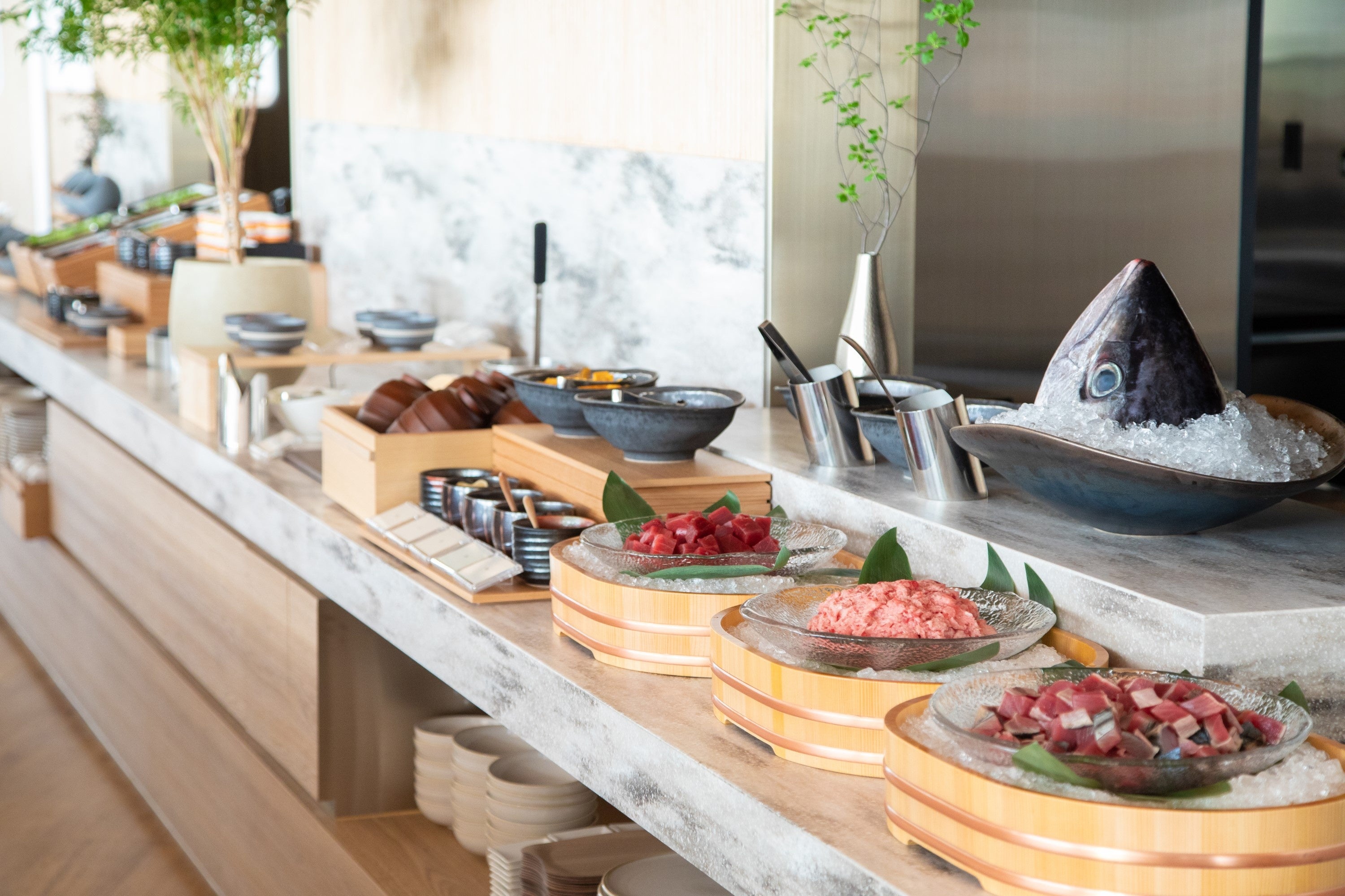 内装やコンセプトを一新し、メニューも「PRIME RIB DINING & 房総鮨ブッフェ」をご提供いたします。肉と魚を同時に楽しめる「SURF&TURF」スタイルのディナーで、最上級のプライムリブビーフを使用したメインディッシュや職人がライブキッチンで握る鮨をお楽しみいただけます。さらに、新鮮な海の幸やご当地グルメの勝浦タンタンメンなど、多彩なブッフェ料理をご用意し、ご夫婦やご家族連れをはじめ、幅広いお客様に贅沢な食体験をお届けいたします。