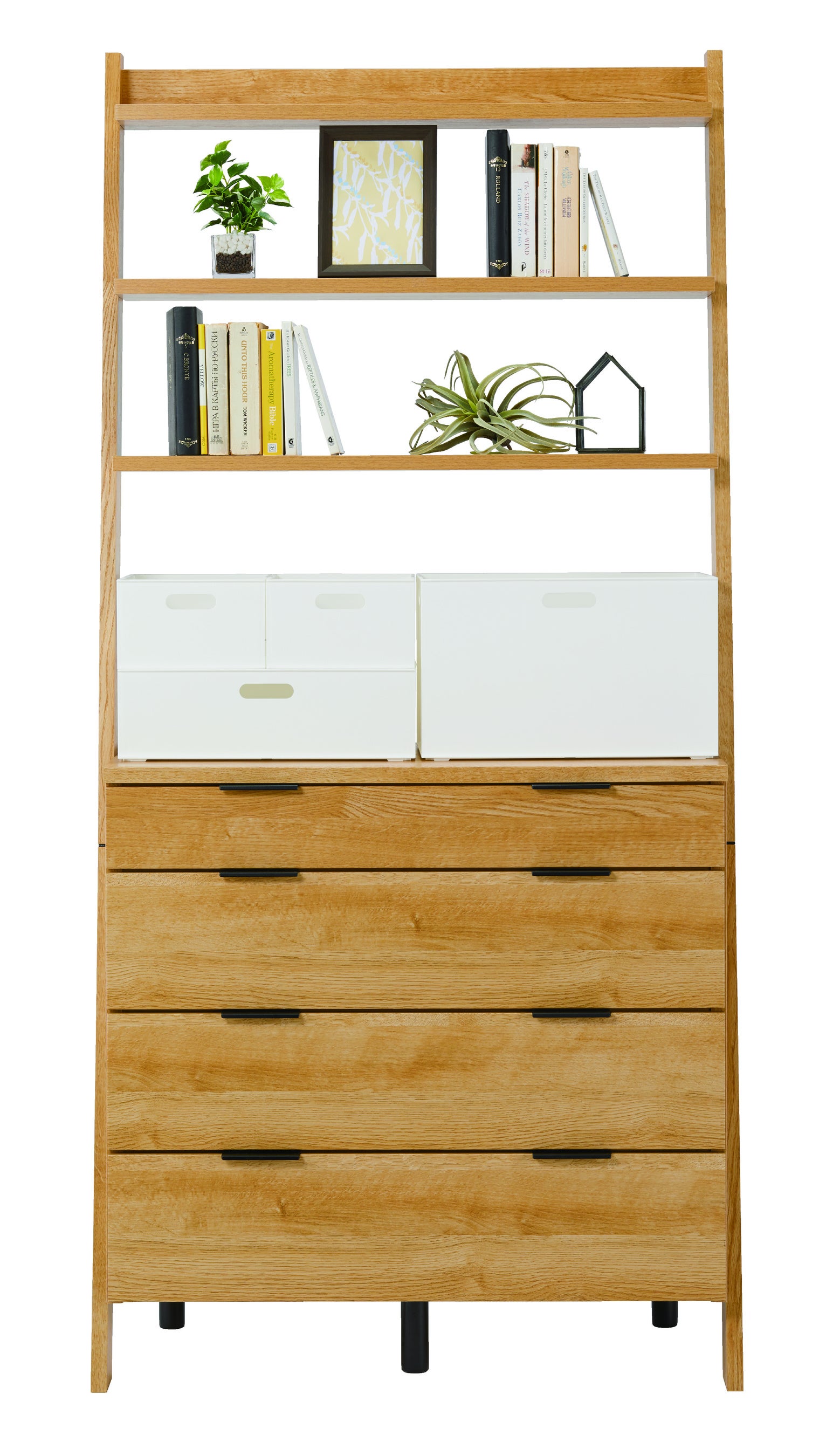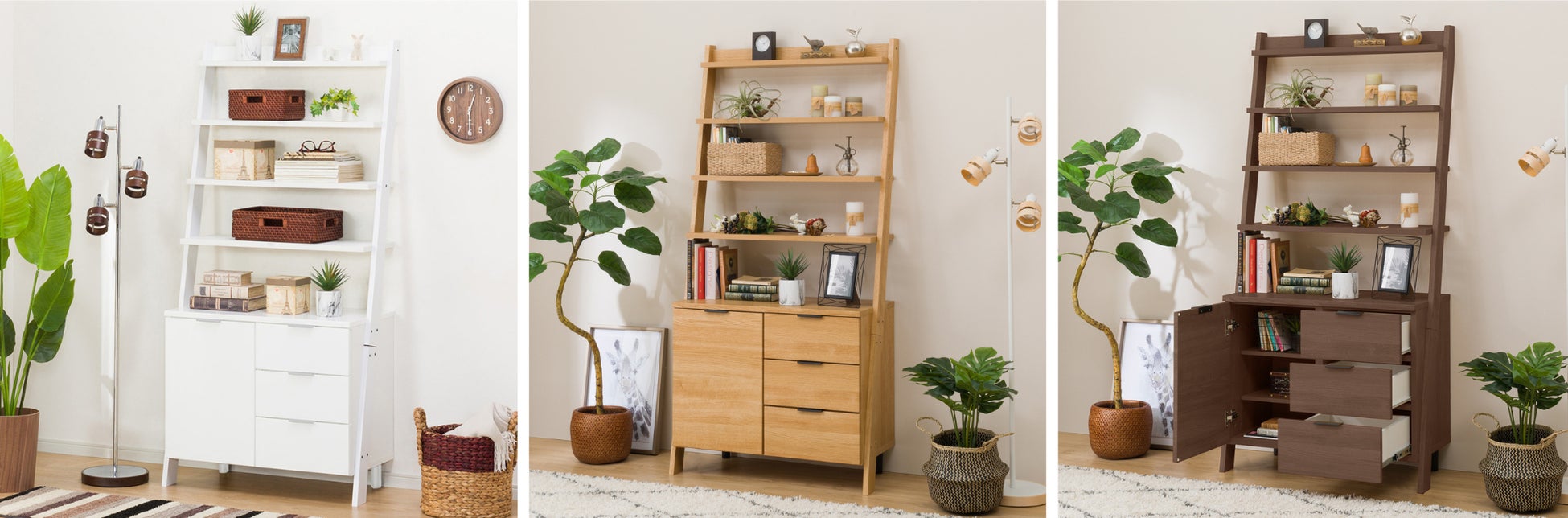 豊富な収納力が魅力なのはもちろん、飾り棚がついているのでお気に入りのインテリアやよく読む本等を綺麗にディスプレイして楽しめます。脚付きなので家具の下が掃除しやすいだけでなく、抜けを作ることでお部屋を広く見せることもできます。