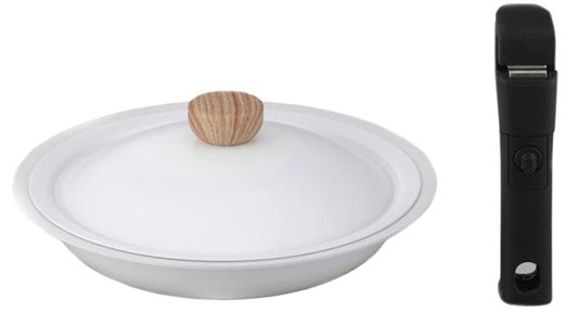 同時に販売中の「IH対応 そのまま食卓に出せるフライパン3点セット」は取っ手が取れるフライパンで、お皿のような色と質感なので、調理後は取っ手を外してそのまま食卓に出すことができます。