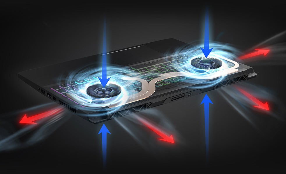 さらに、熱によるパフォーマンス低下を防ぐための冷却ファンを2基搭載。4つの排気口から効率的に熱を排出します。加えて、冷却性能をさらに向上させるAcer独自の冷却システムAcer CoolBoostTMも搭載。独自機能のシステム設定アプリNitroSense内から機能をオンにすると、通常時と比べて、冷却ファンの速度が10%向上するうえ、CPUとグラフィックスの冷却効果が9%向上します。