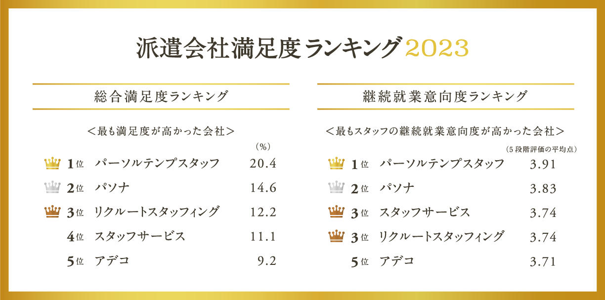 派遣の働き方研究所「派遣会社満足度ランキング2023」を発表