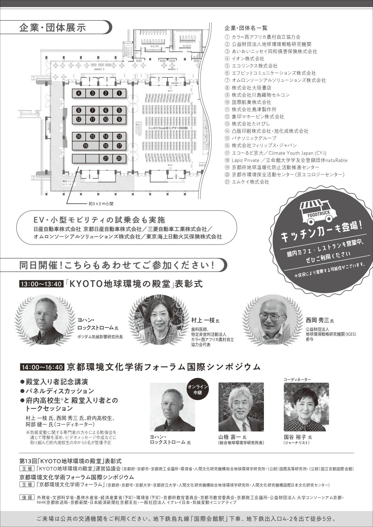 11月14日(月)開催の「京都環境文化学術フォーラム」において、今年度新たに企業登壇シンポジウムや企業、学生、環境団体等によるブース展示を行います。是非ご参加ください!