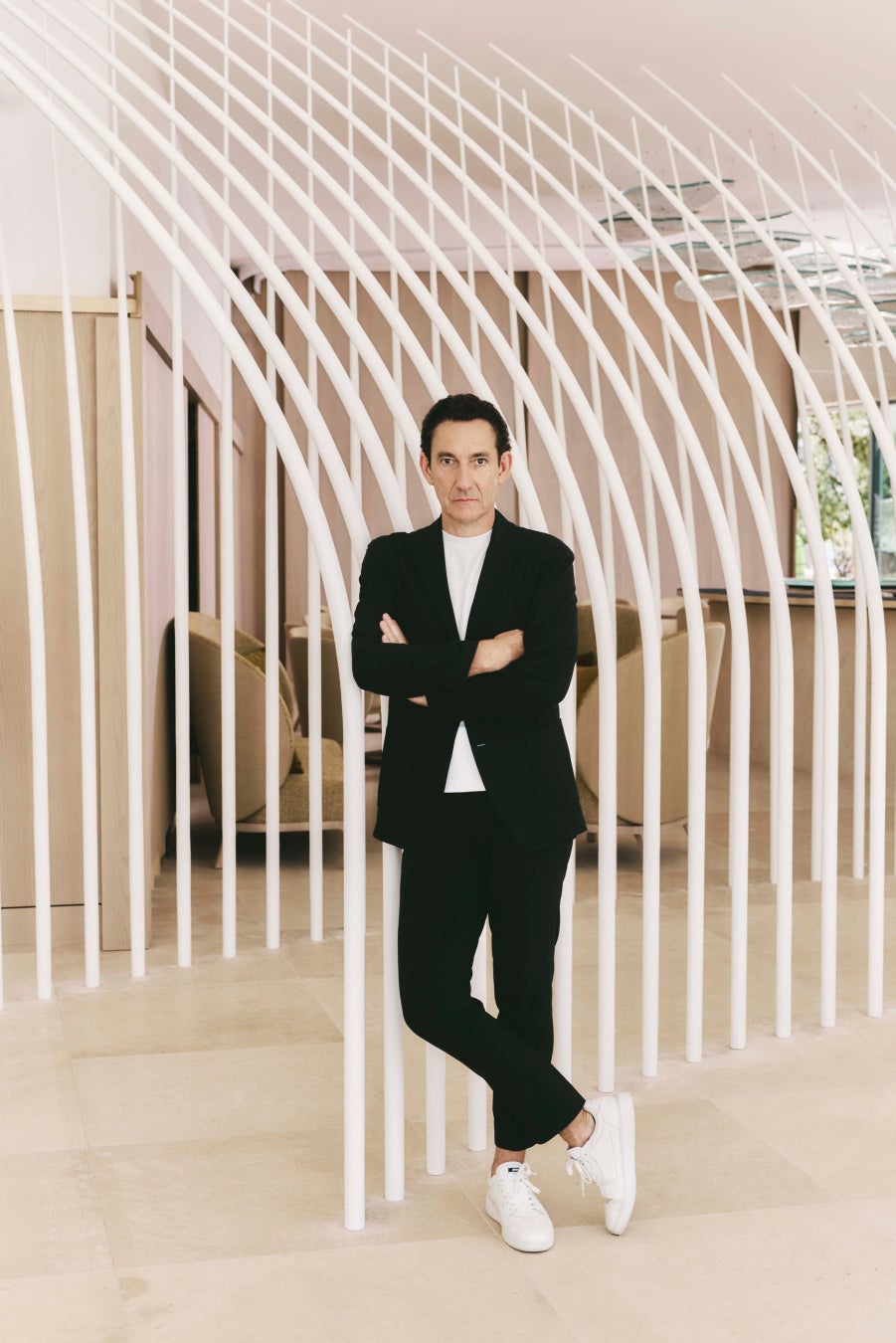 「ルイナール メゾンの素晴らしさは未来思考にあると感じています。自然をリスペクトしながら人の流れをどう コントロールするかを考え抜きました。エントランスから もう未来へと誘う導線が始まり、奥へ進むにつれて歴史や 伝統的なものへとコネクトしていきます。“ピースフル”という言葉がしっくりくる、居心地のいい空間が完成しました。」