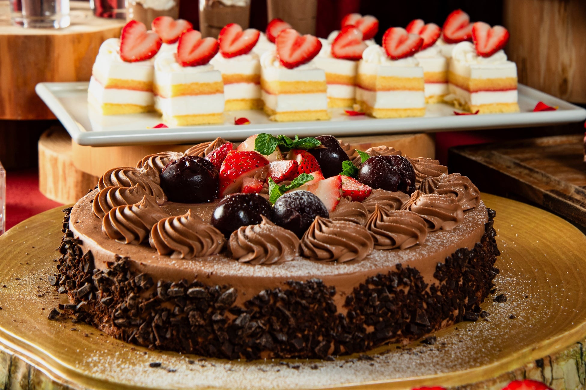 季節毎にテーマを設け、旬のフルーツを贅沢に使用しているデザートビュッフェ。第一弾は、鮮やかなレッドとシックなブラウンで彩る、バレンタインを感じられる「いちご×チョコレート」をテーマにご提供いたします。