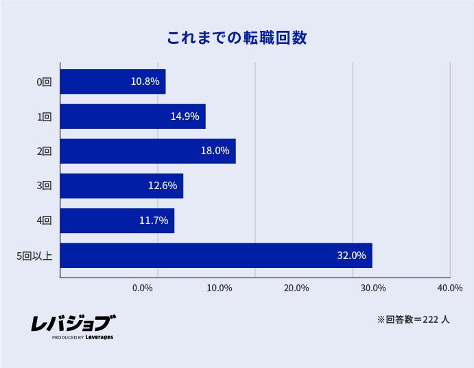 40歳以上のドライバーのうち、40歳以降に「転職経験がある」と回答した方は半数を超えました。これまでの転職回数は「5回以上(32.0%)」が最も多く、市場における雇用の流動性の高さがうかがえます。