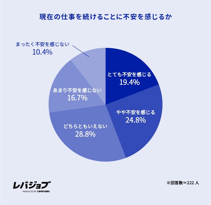 40歳以上のドライバーに、「現在の仕事を続けることにどの程度不安を感じるか」を尋ねたところ、 「とても不安を感じる(19.4%)」「やや不安を感じる(24.8%)」と回答した人は合わせて約44%でした。