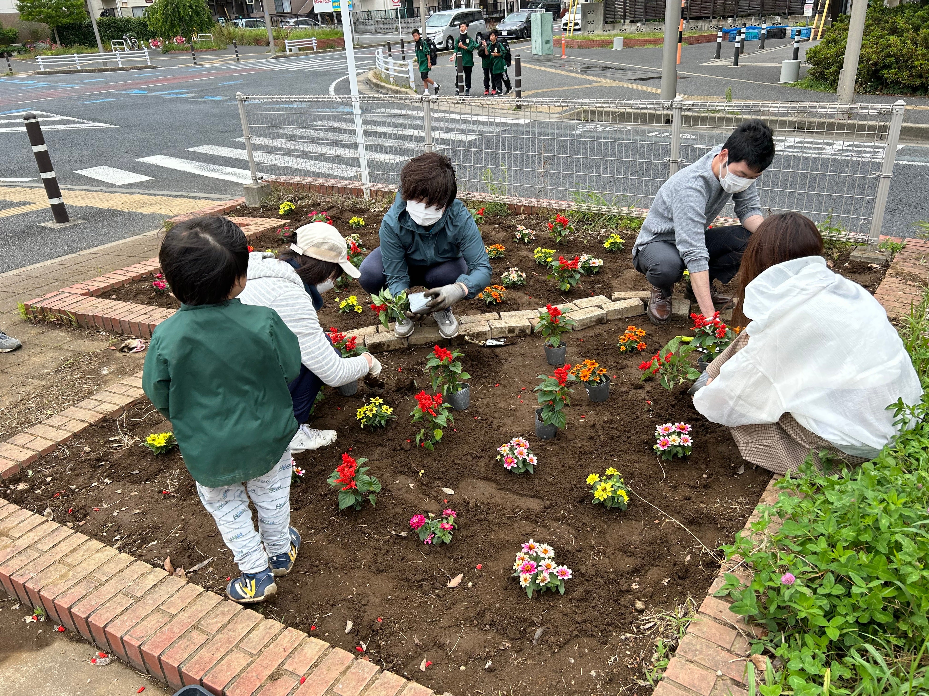千葉市が行っている「花いっぱい市民活動」の花苗配付の助成を活用し、2013年より毎年春と秋の計2回、近隣住民と合同で花の苗を植えるイベントを行っています。昨年10年目を迎えました。