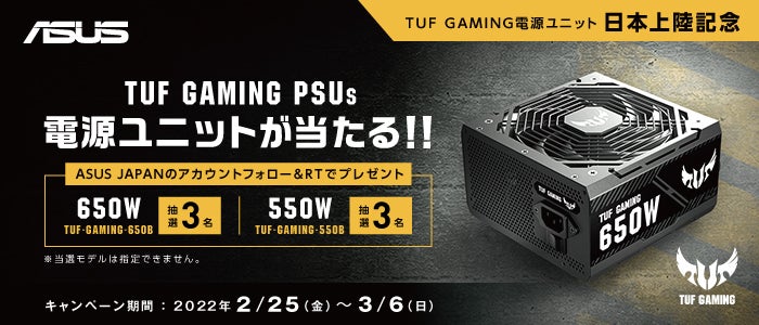 TUF GAMINGシリーズ電源ユニット発売記念、Twitterフォロー&RTキャンペーン開催を発表