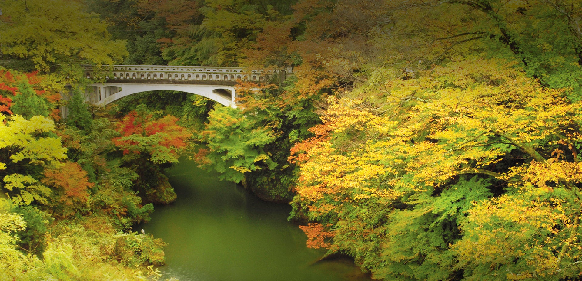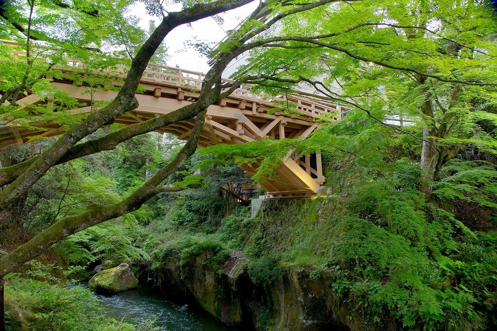 温泉街に沿って流れる「鶴仙渓」沿いの1.3kmの遊歩道には「川床」や「あやとりはし」のライトアップ、「こおろぎ橋」など風光明媚な自然が残ります。九谷焼や山中塗、地酒屋が軒を連ねる「ゆげ街道」では、ご当地グルメの食べ歩きもおすすめです。
