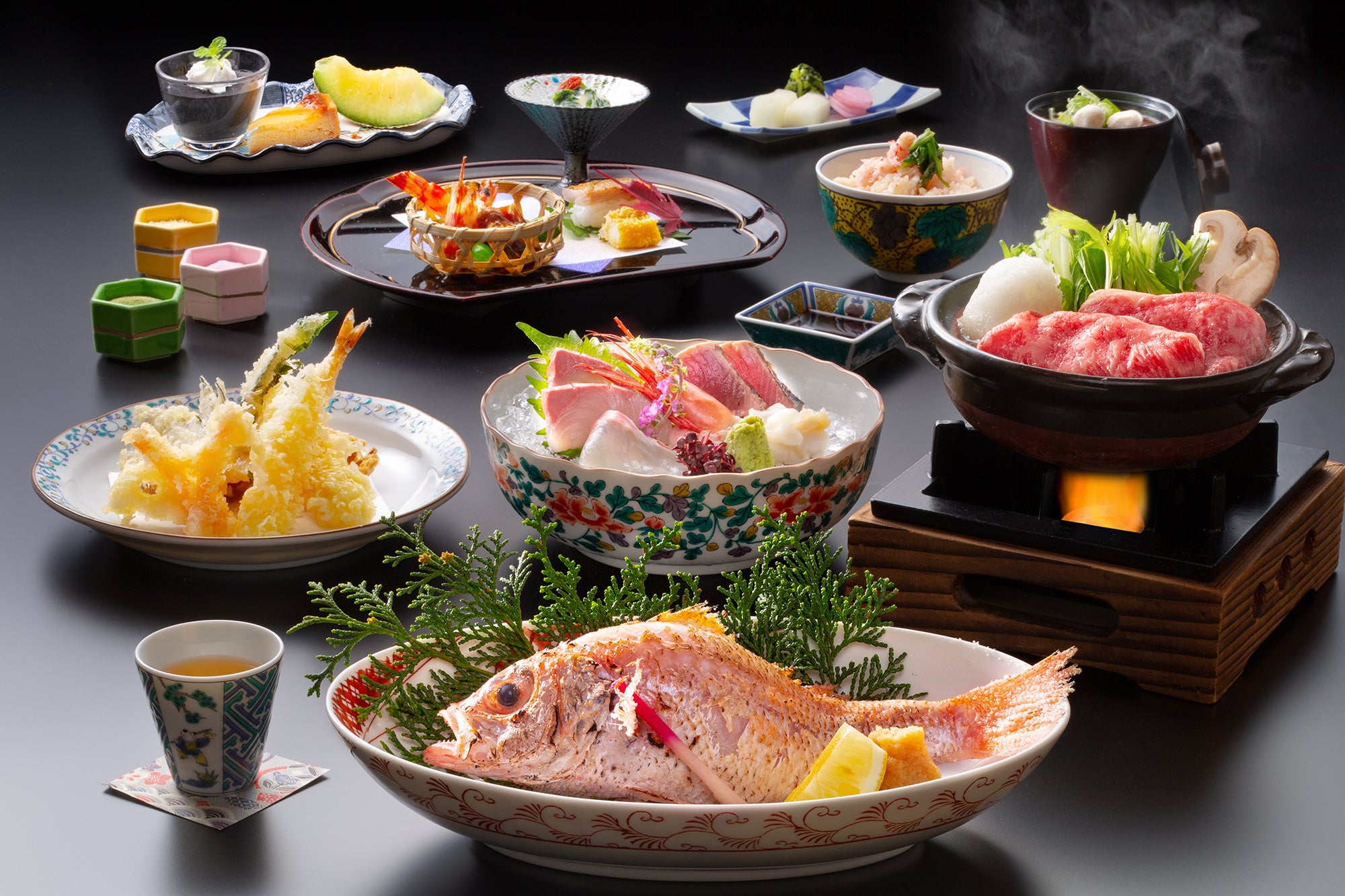 北陸随一の渓谷美と謳われる「鶴仙渓」沿いの加賀コンシャスな湯宿「吉祥やまなか」(石川県加賀市 総支配人:村井博 https://kissho-yamanaka.com/)は、2024年3月31日までの期間、夕食に「のどぐろ・和牛会席」を味わい、14の無料のおもてなしに加え、5つの特典付き宿泊プランをご用意しました。