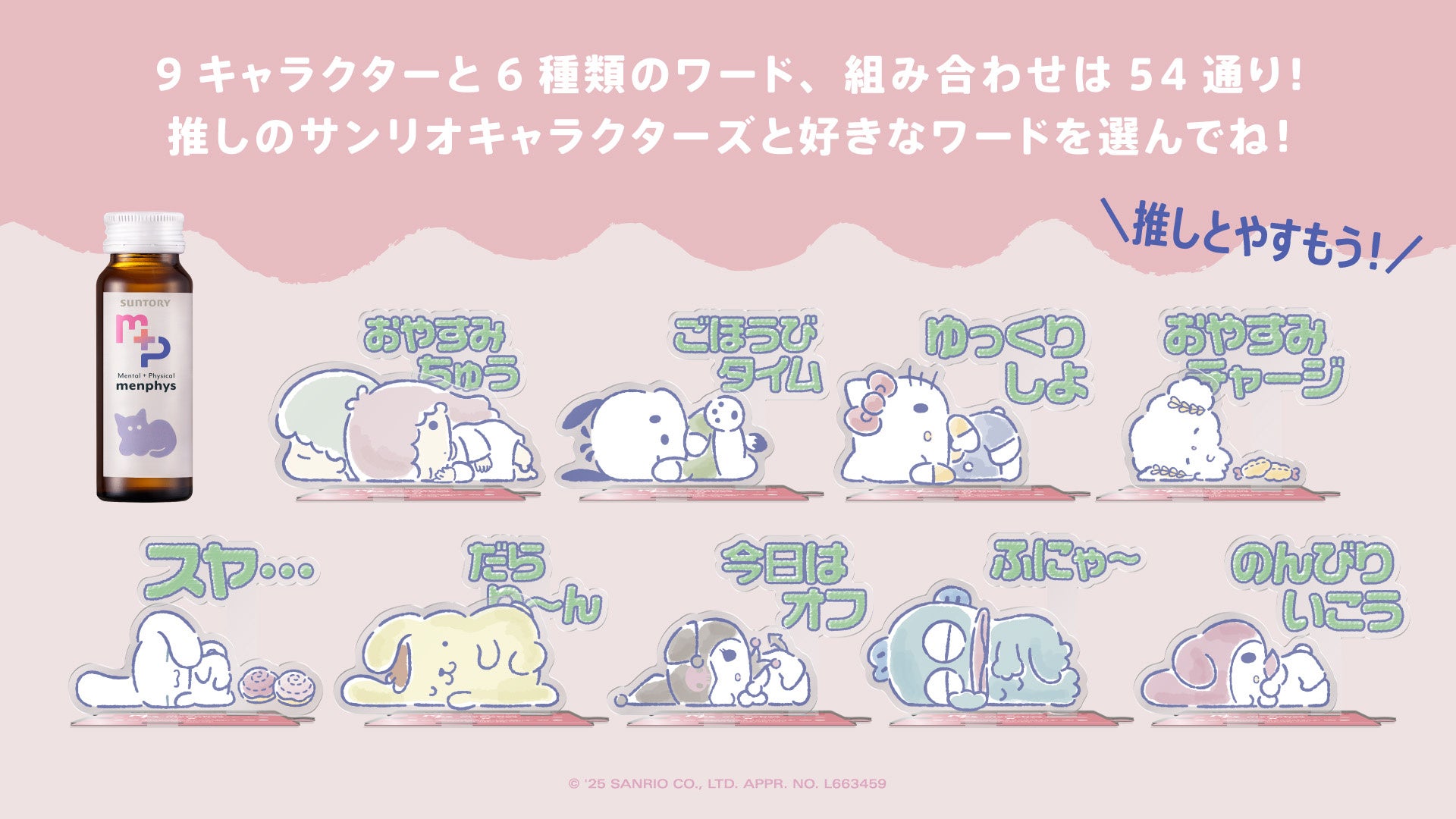 セルフケアドリンク「menphys(メンフィス)」がサンリオキャラクターズとコラボ!「推しとやすもう」スターターセット発売