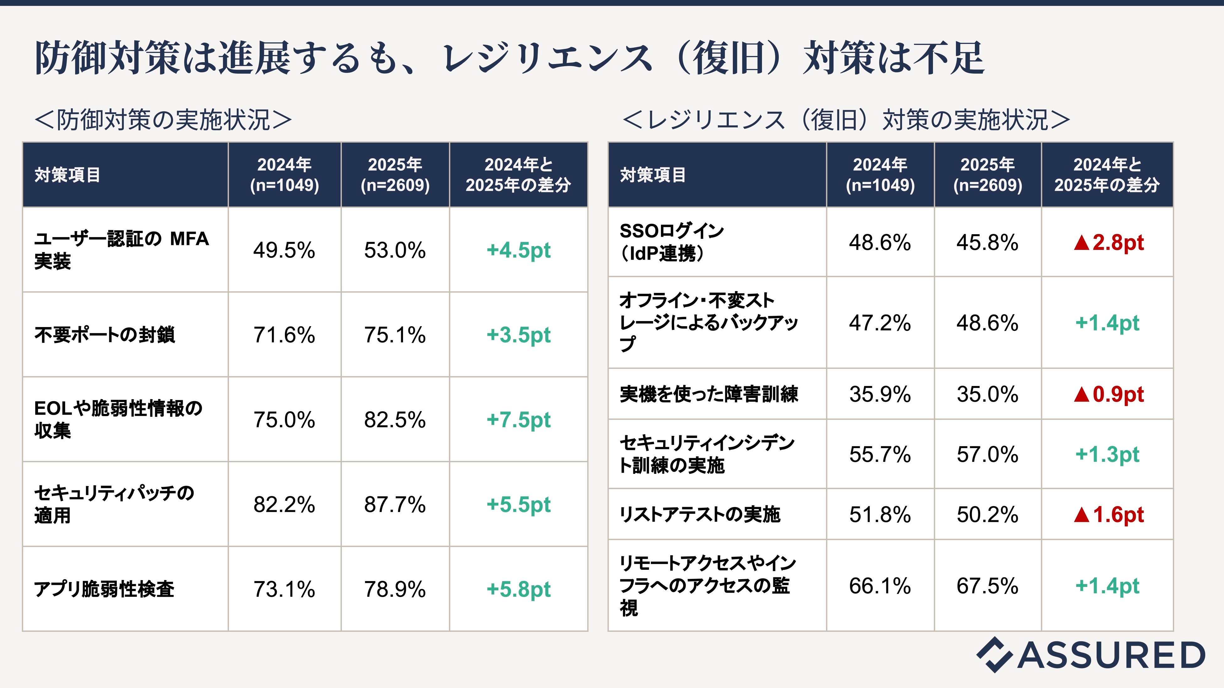 3. 防御対策は進展するも、レジリエンス(復旧)対策は不足