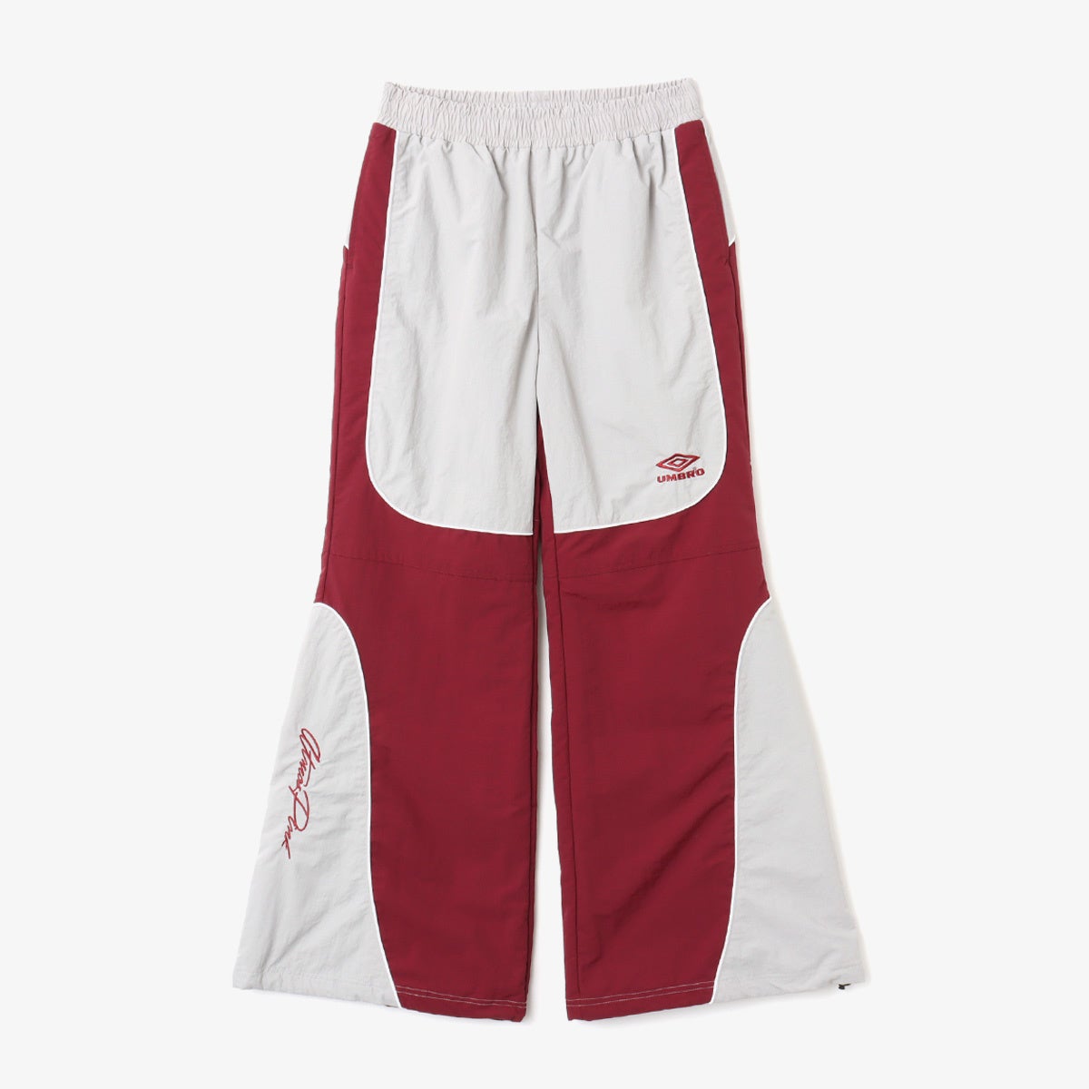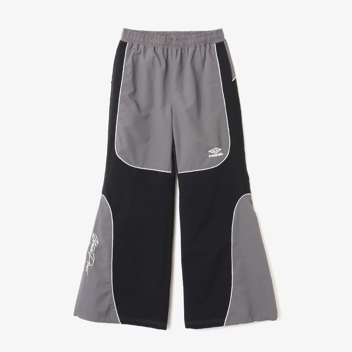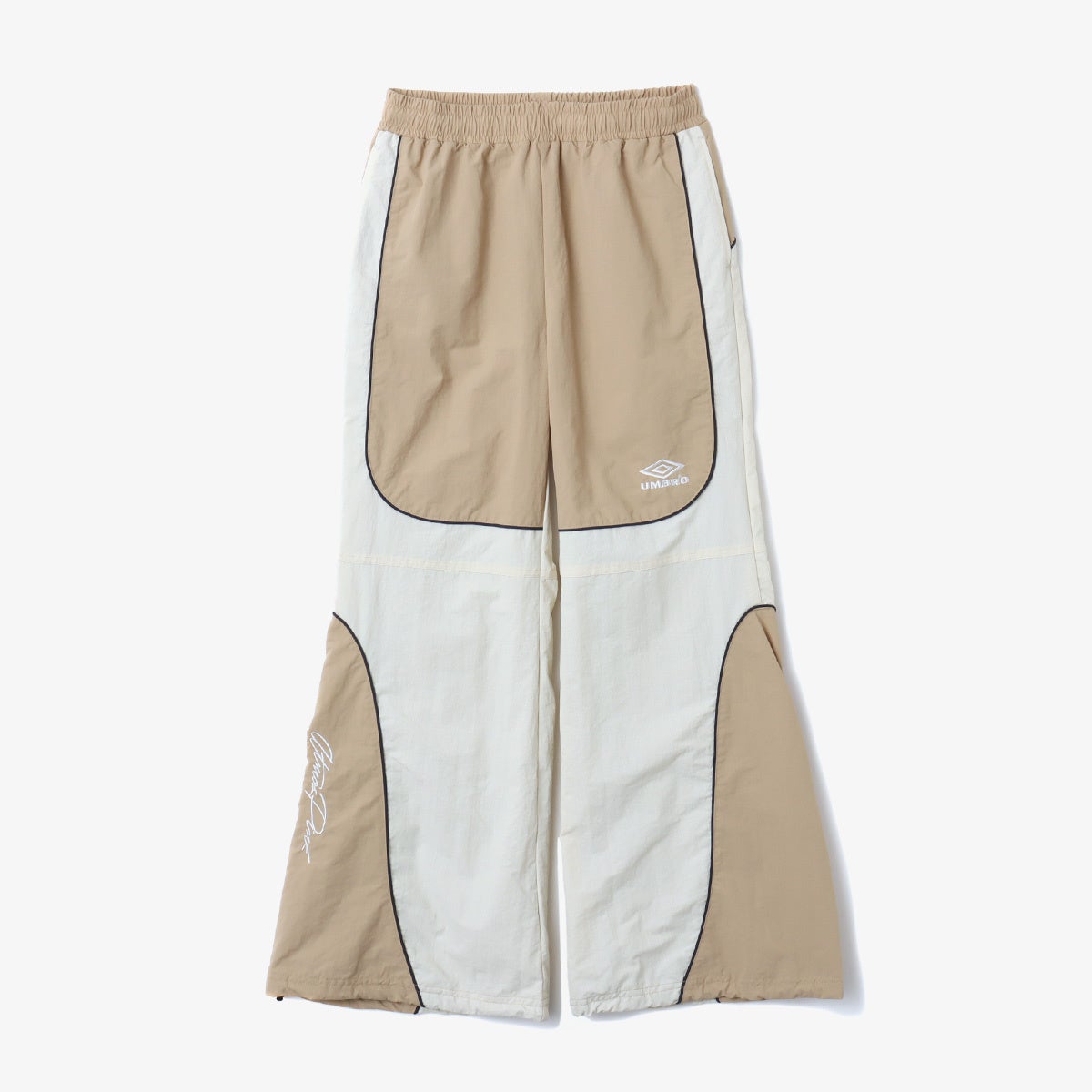 フロントからバックへと繋がるカーブラインとバイカラーが目を惹くトラックパンツ。フロントにダイヤロゴ、右裾にはatmos pinkの手書き調のロゴ刺繍を施し、スポーティーな中にも軽やかで女性らしい抜け感をプラス。