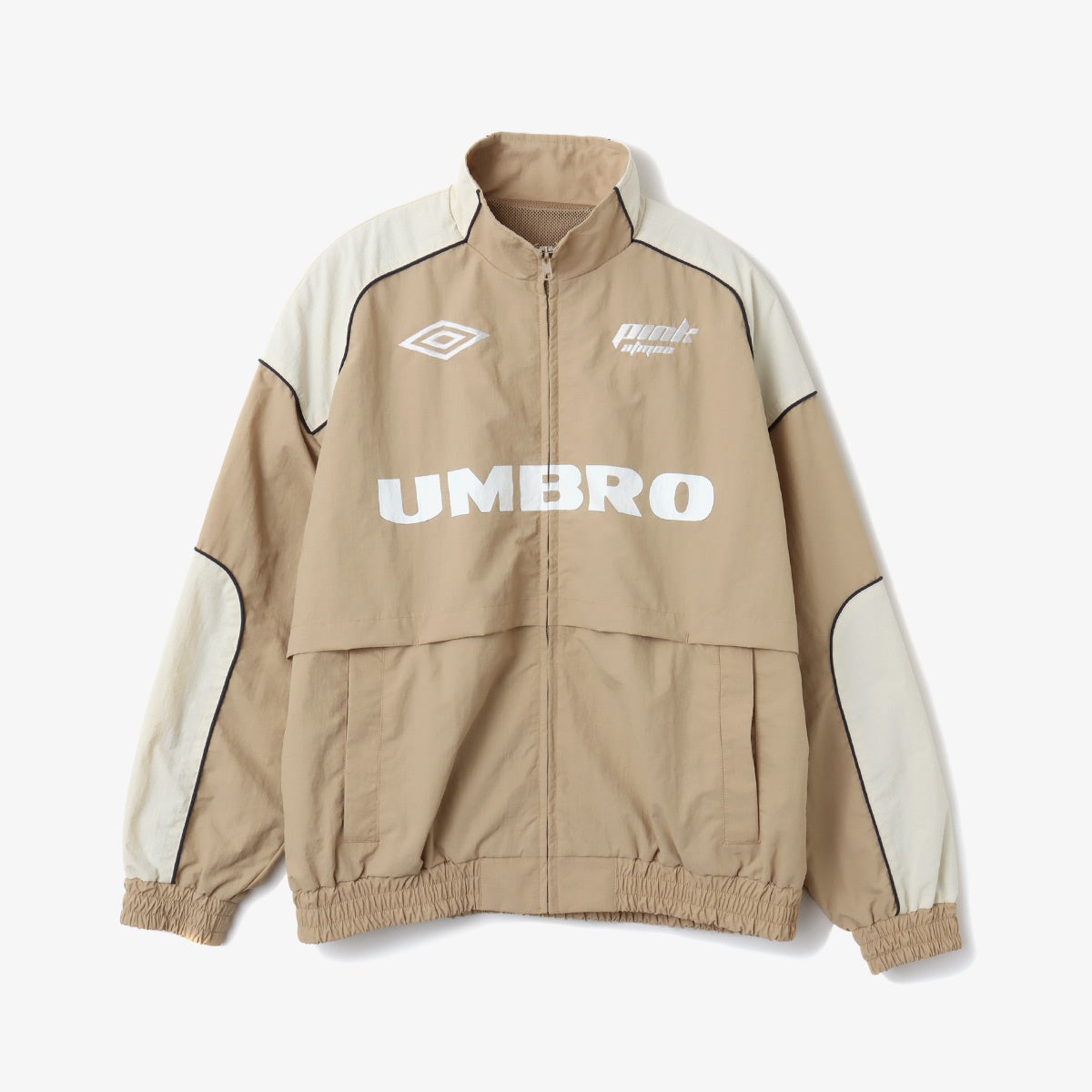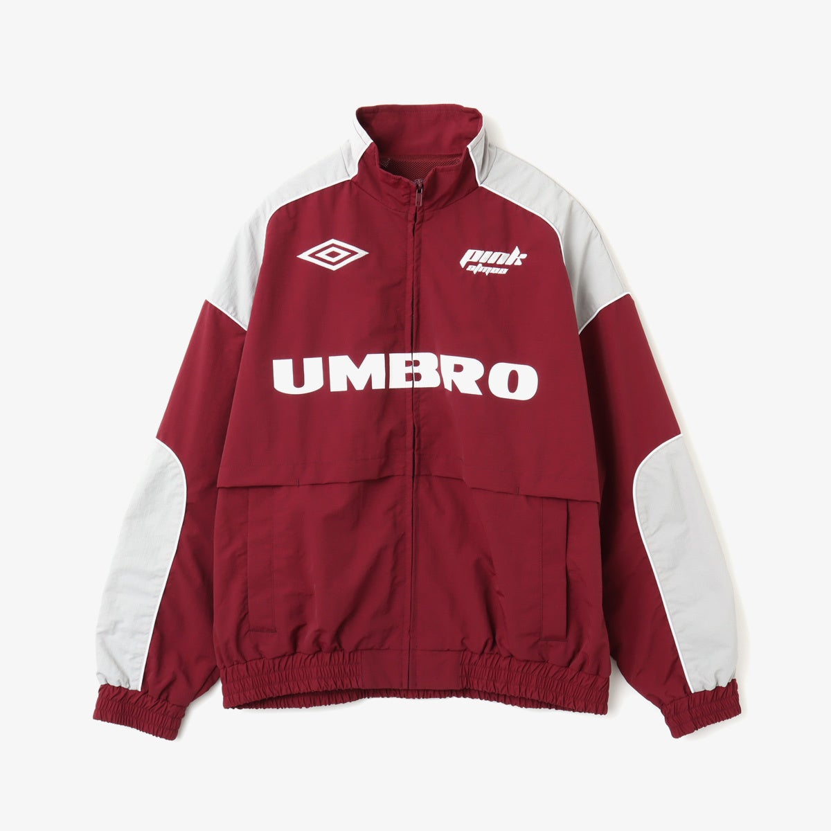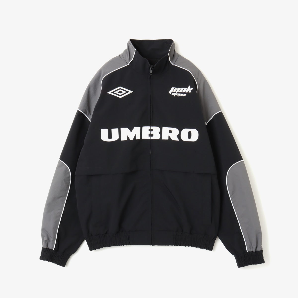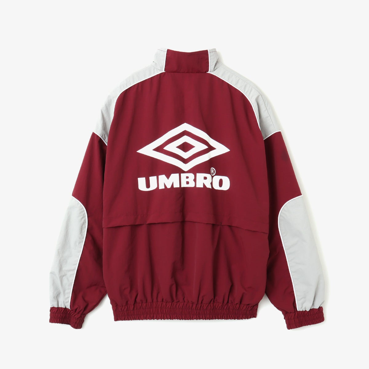 フロントはファスナーを跨いで大胆に配置されたUMBROのロゴ、バックには象徴的なダブルダイヤロゴをプリントしたトラックジャケット。前後の身ごろに設置したベンチレーションが優れた通気性と快適な着心地を実現。オーバーシルエットが特徴のデザインは、さらっと羽織るだけで程よいカジュアル感とこなれた雰囲気を演出し、デイリーユースはもちろんスポーツシーンまで幅広く活躍します。