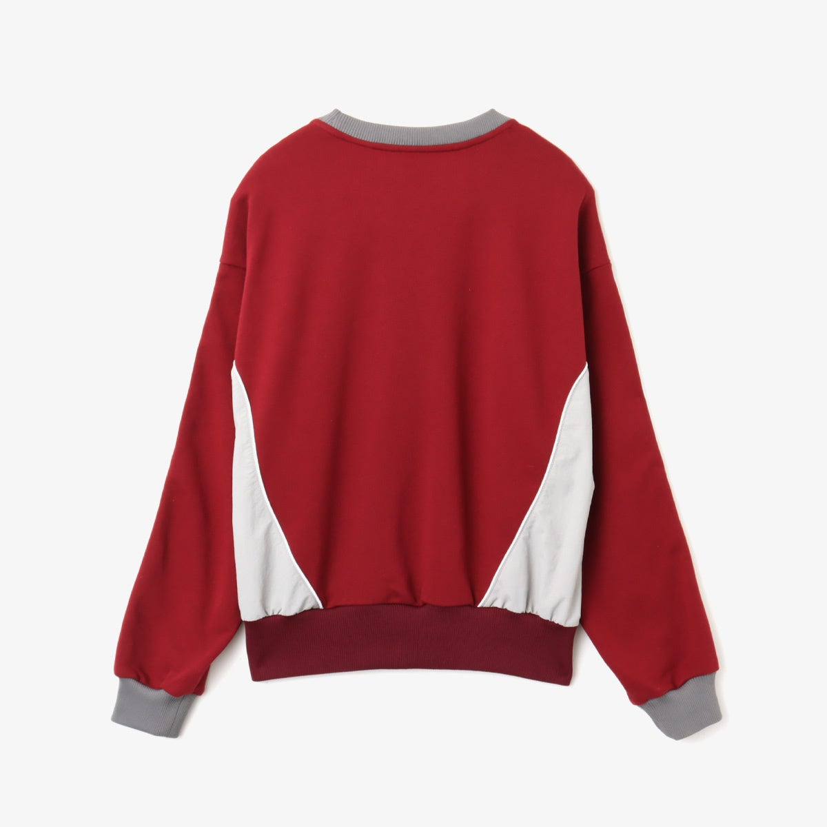 裏毛とナイロンの異素材を切り替えデザインで組み合わせたスウェットトップスは、トレンドのスポーツMIXスタイルが叶う一着。フロントにナイロンワッペンでダブルダイヤを、左袖にはatmos pinkロゴを刺繍で施しています。