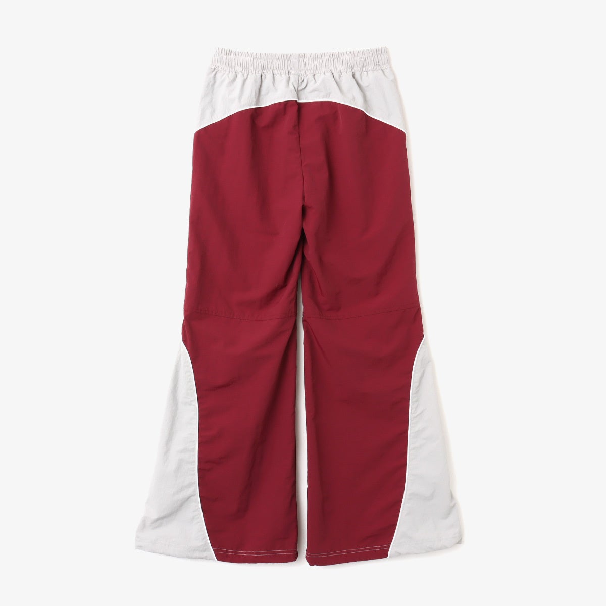 トラックパンツには珍しいバギーフレアシルエットを採用したことで唯一無二の存在感があり、ドローコードで調整可能な裾は丈感の調整も可能。デザイン性と機能性を兼ね備えたアイテムです。