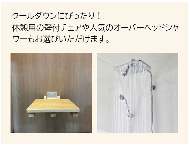 サウナ浴の休憩に便利な壁付チェアもラインアップ。