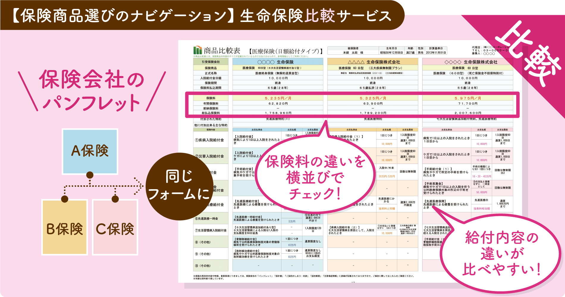10社以上の生命保険会社の商品中から、オリジナル比較表で比べて選べる!