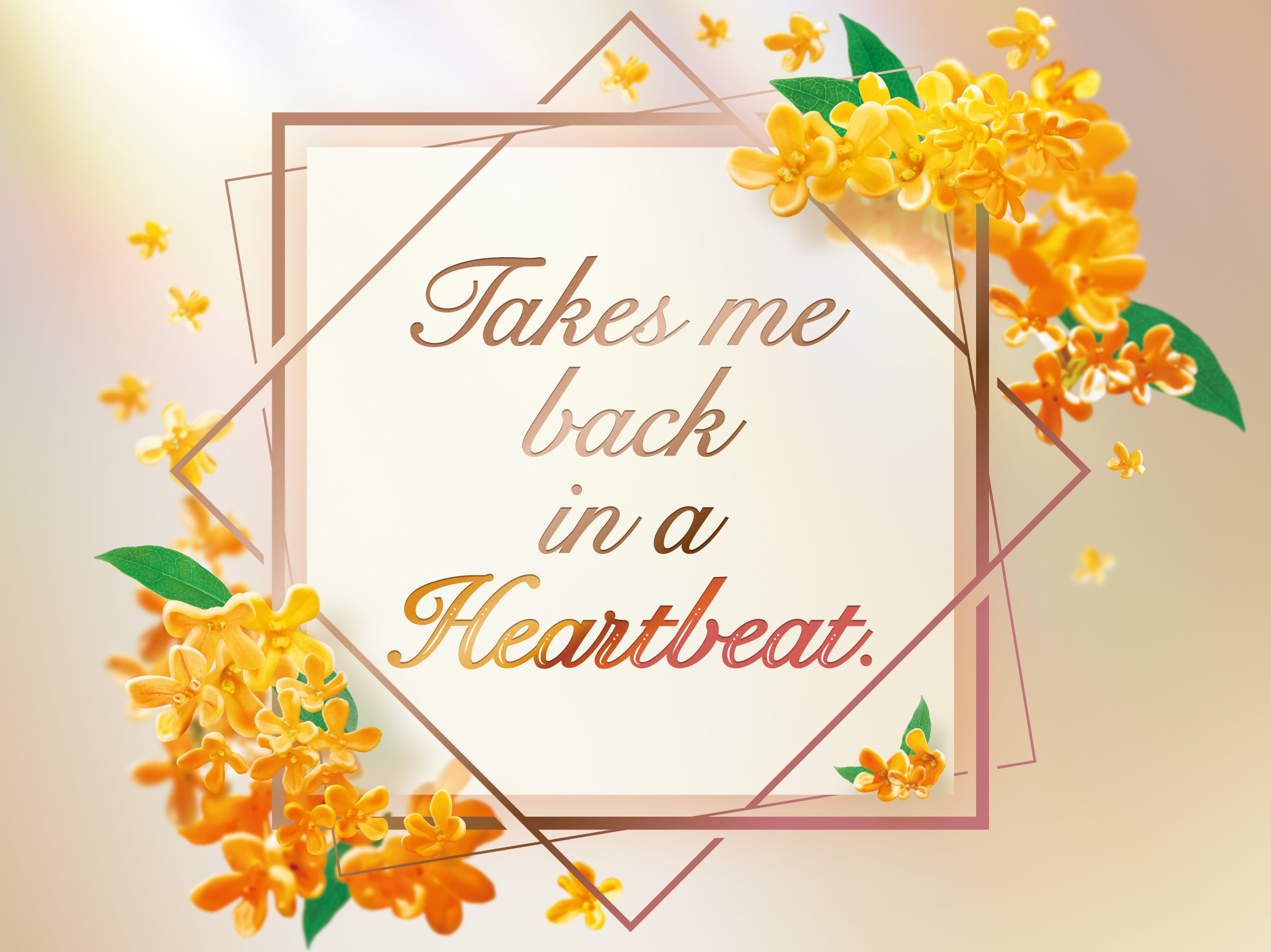 存在感がありながらも風になびくようにやわらかなフローラルの香り。キンモクセイの花が散りばめられたパッケージデザインも魅力的。
