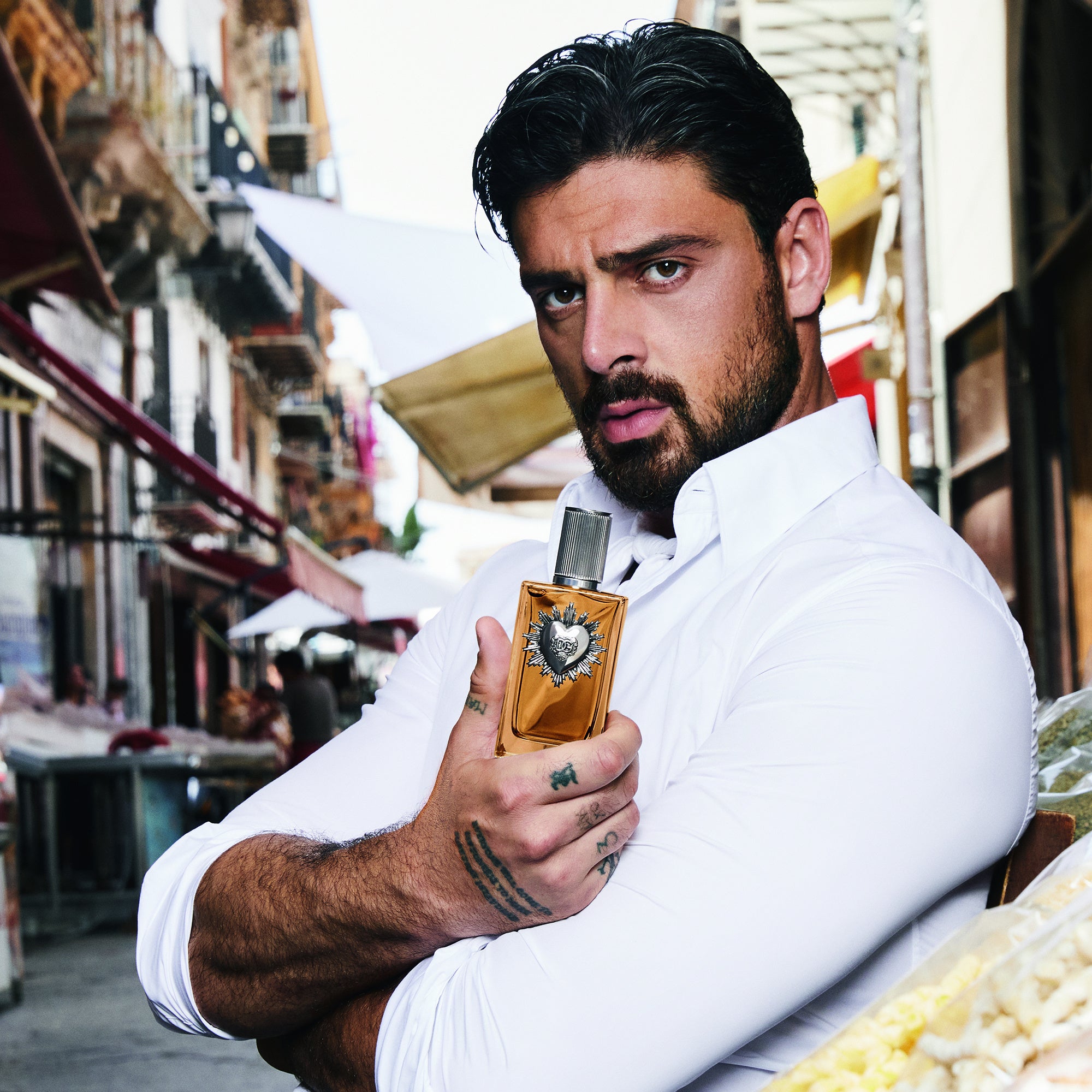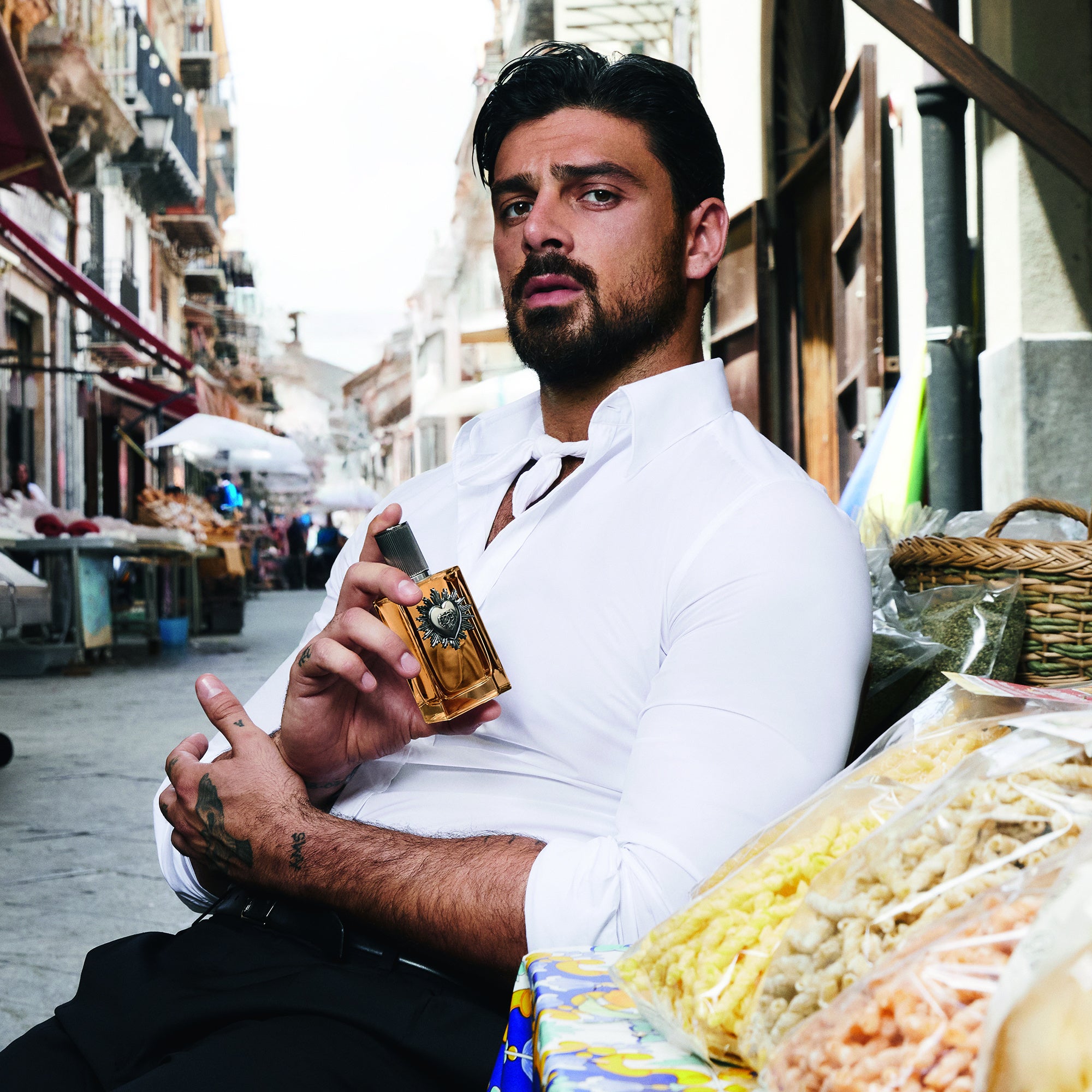 ドルチェ&ガッバーナの男性用フレグランス「ディヴォーション プールオム」のキャンペーンを指揮したのは、輝かしい受賞歴を誇る監督兼脚本家のジュゼッペ・トルナトーレ。パレルモの歴史的中心部で撮影された映像は、強烈な印象を残す運命的な出会いをとらえています。