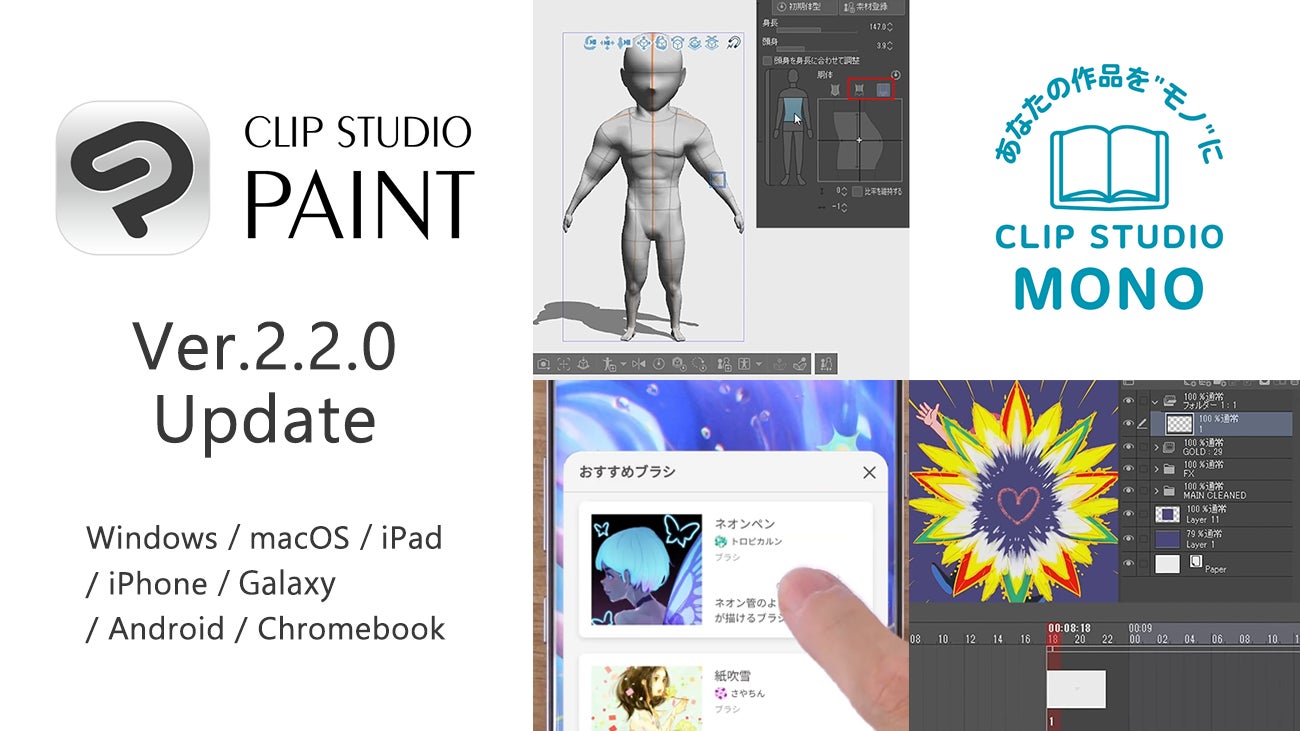 CLIP STUDIO PAINT Ver.2.2.0機能追加アップデータを公開 3Dやアニメーション機能改善と「CLIP STUDIO MONO」連携機能を追加