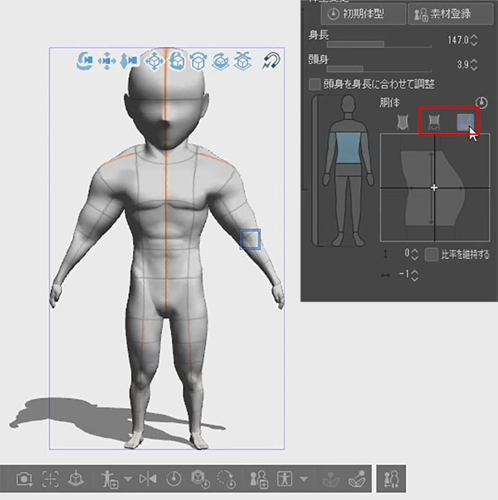 3Dデッサン人形の体型がより詳細に設定できるようになり、奥行きや厚みの調整も可能になりました。また、3DアバターやVTuberのモデル等に使われているVRM形式の3Dファイルの読み込みにも対応しました。