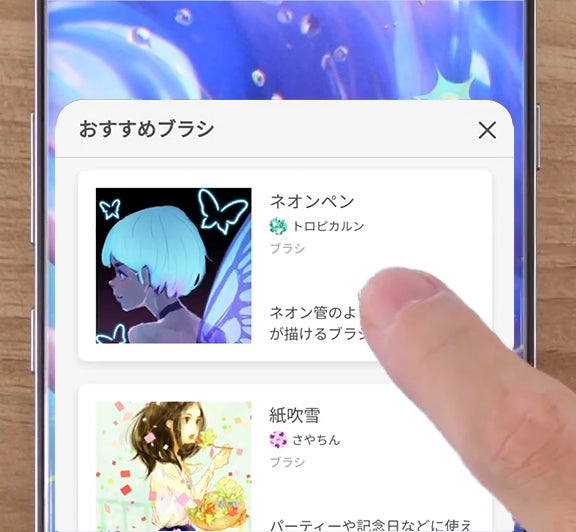 2023年6月に対応した、モバイルデバイスでの使用に最適なインターフェースであるシンプルモードの使用時に、「CLIP STUDIO ASSETS」素材をより使いやすくする改善を行いました。今まで「CLIP STUDIO PAINT」がターゲットとしていたユーザー層が、無料アプリやシンプルな機能のアプリがターゲットとする、若年層やエントリーユーザーを中心としたユーザー層にまで広げる改善を行っています。