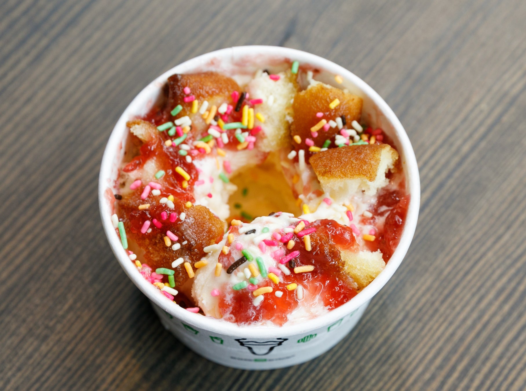 日本国内のシェイク シャックではアイスデザート「コンクリート」の売上から5%をチャリティーパートナーに寄付しています。本店舗では、バニラのフローズンカスタードをベースに、シュガードーナツ、ストロベリージャム、レインボースプリンクルをトッピングした「レインボーコネクション」の売上の5%を「一般財団法人ダイバーシティ研究所」に寄付いたします。